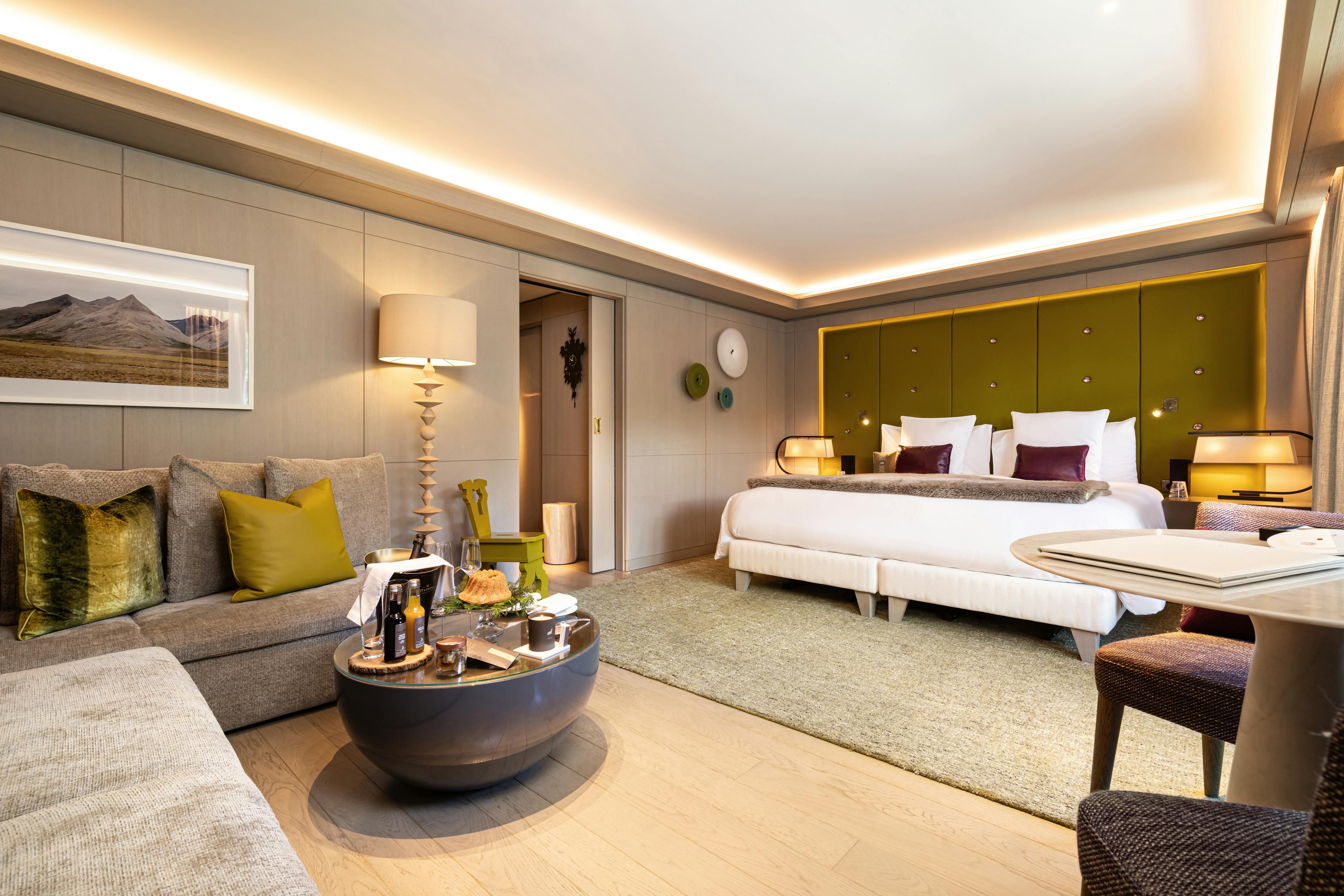 The Deluxe Superior Room benefits from southern exposure, featuring breathtaking views of Saulire peak.