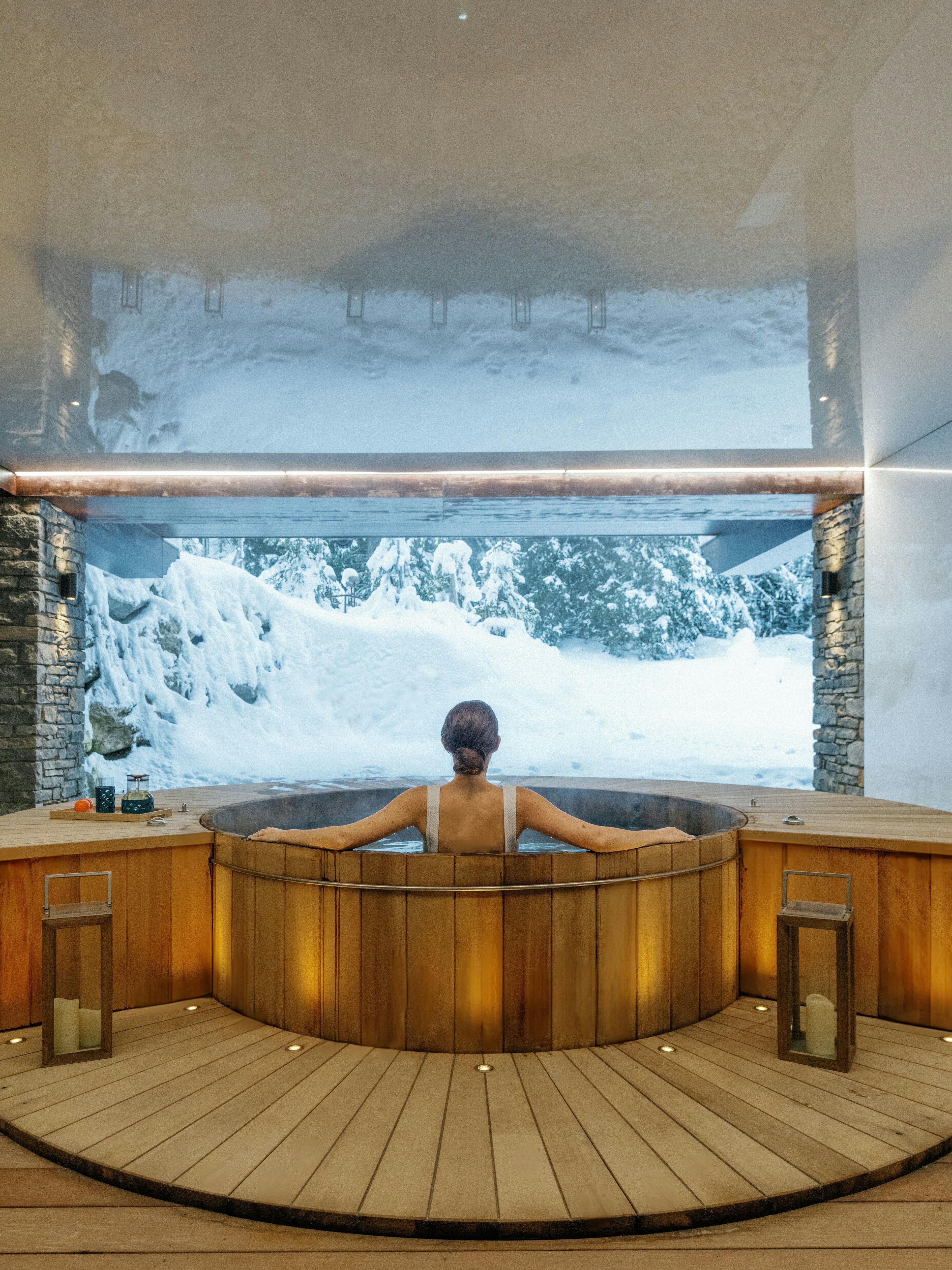 Leave the flurries at the door. Crystals and ice fountains promote wellness from within. The sumptuous sauna warms deep within the soul. The chromotherapy hammam-steam room ignites recovery and releases tension. The whirlpool and Russian banya invite to reconnect with the Alpine surroundings.
