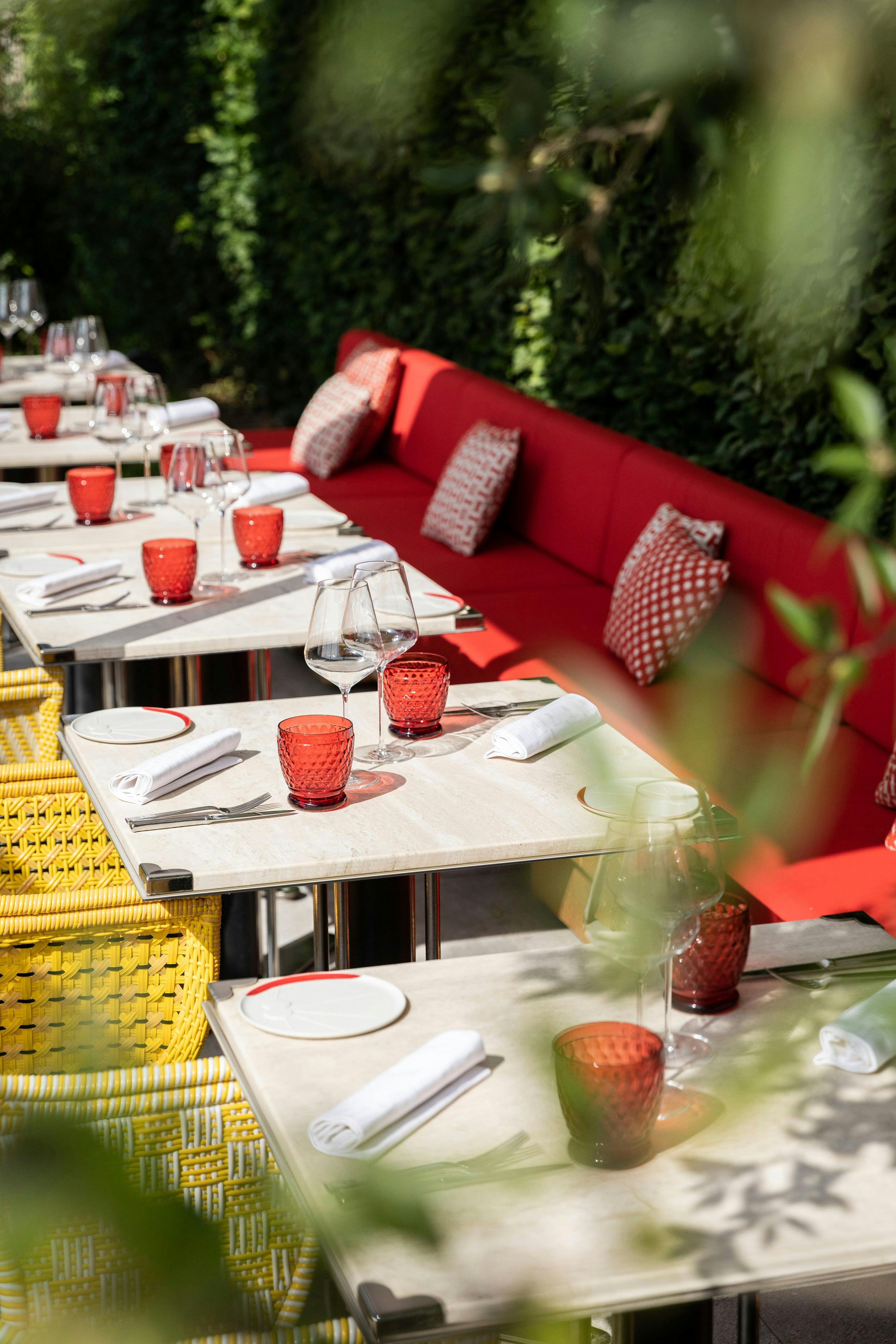 In this 650 square-meter sky garden, chic, warm shades of red dance with white in a custom-made decor designed to celebrate refinement and the French art de vivre.