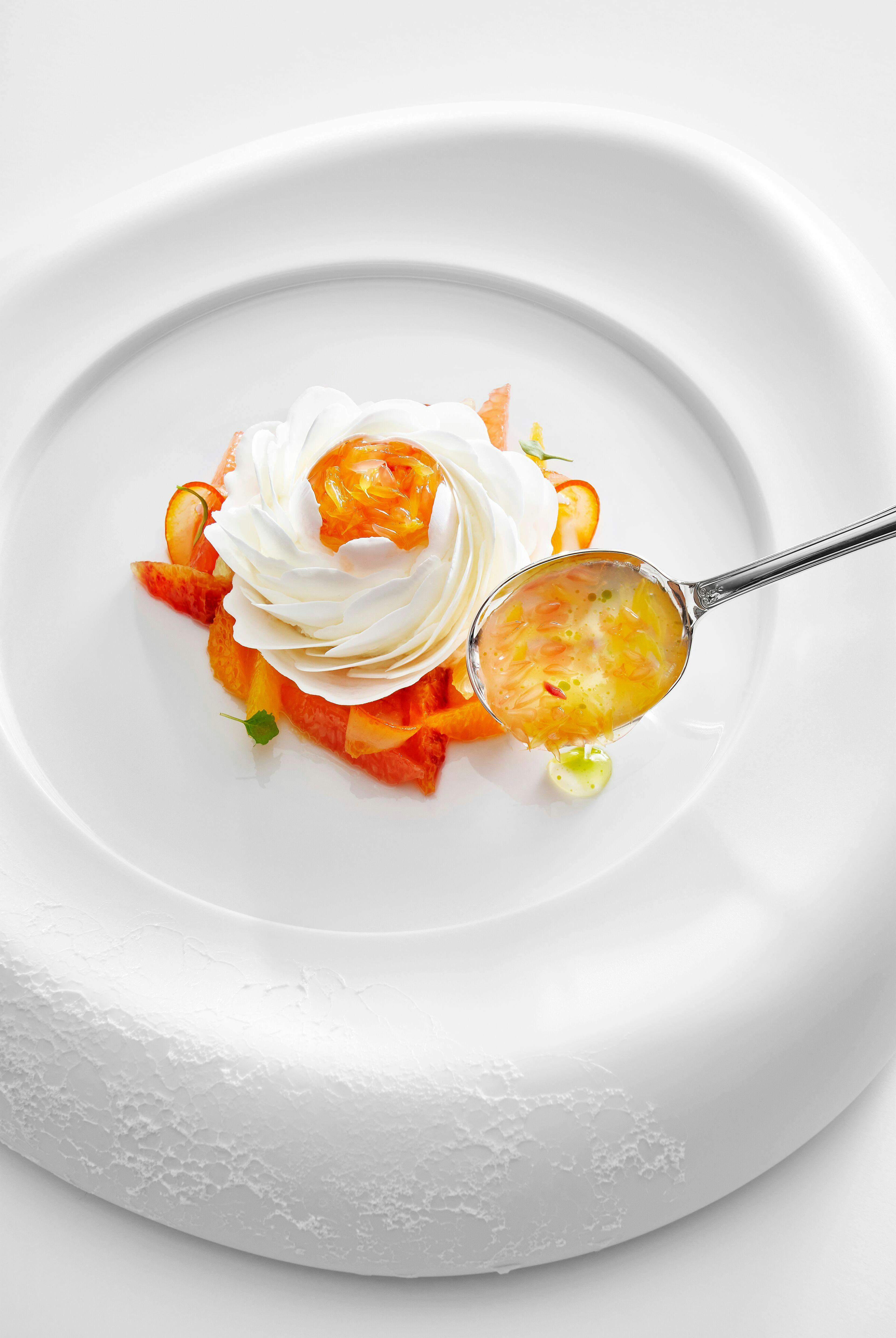 As the curtain comes up, the sauce is centre stage. Arnaud Donckele has donned the apron of a master perfumer. That of a “nose” paying homage to the four seasons as manifested in the sauce, elevated from its standard supporting role to take the lead in this theatre where time has suspended its flight.