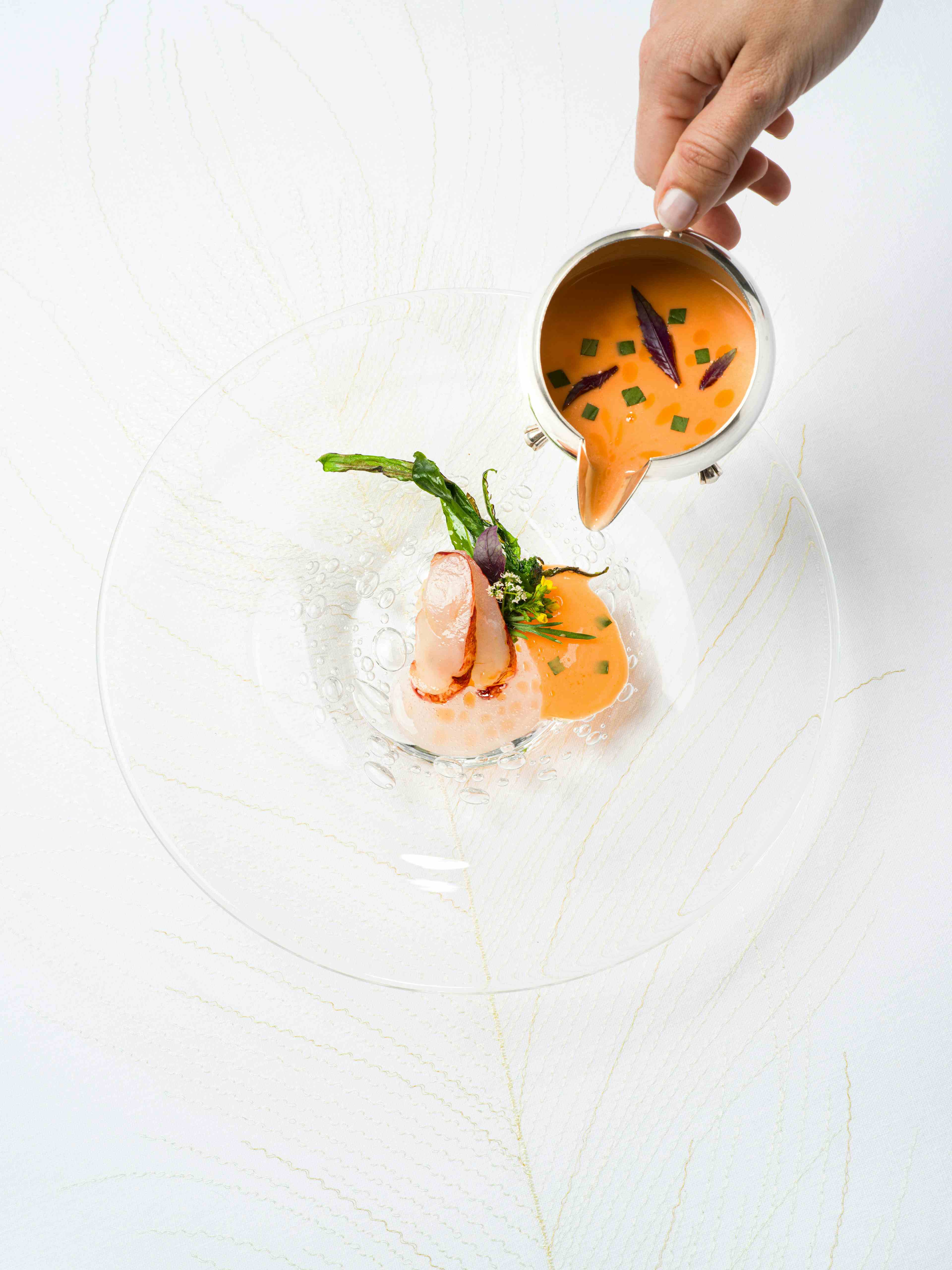 A modern saucier composing like a perfumer or winemaker perfecting their craft. At Plénitude, Arnaud Donckele dons the apron of an intimate perfumer, a masterful "nose" paying homage to the sauce across the four seasons. Long relegated to a supporting role, the sauce takes centre stage in this timeless haven. The "Absolutes," as named by their creator, bloom like bouquets—an anthology of a hundred timeless fragrances revealed in a grimoire styled as an abecedary. Here, it is the dishes that harmonise with the sauces, not the other way around.