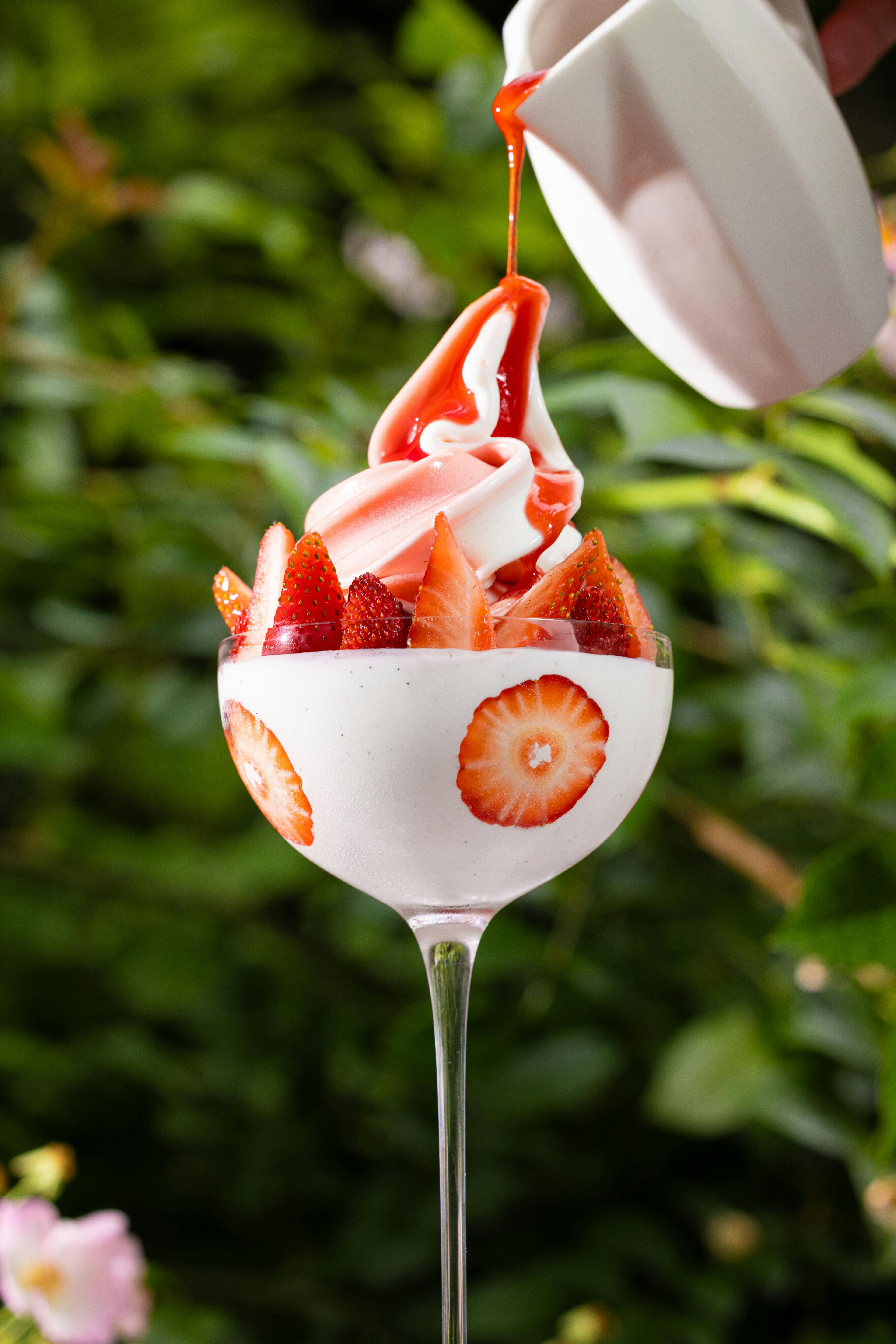 This verdant terrace invites guests to savour the season with a menu curated by Chef William Béquin, celebrating the freshest flavours of summer: a vibrant cherry tomato tart, Provençal-style stuffed vegetables with poultry, beef, and veal, and a showstopping strawberry sundae by Pastry Chef Maxime Frédéric—his elegant take on the classic Italian gelato.