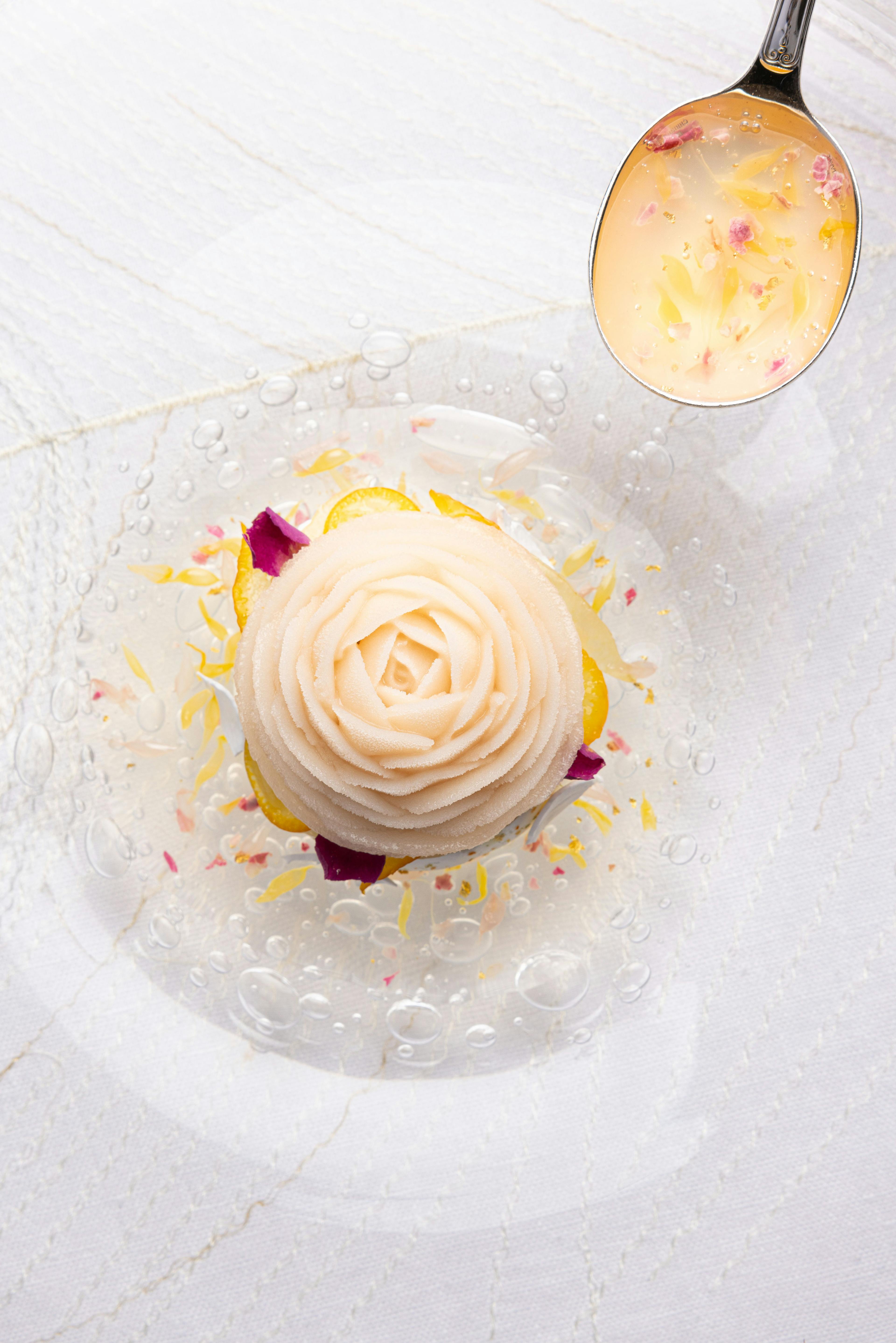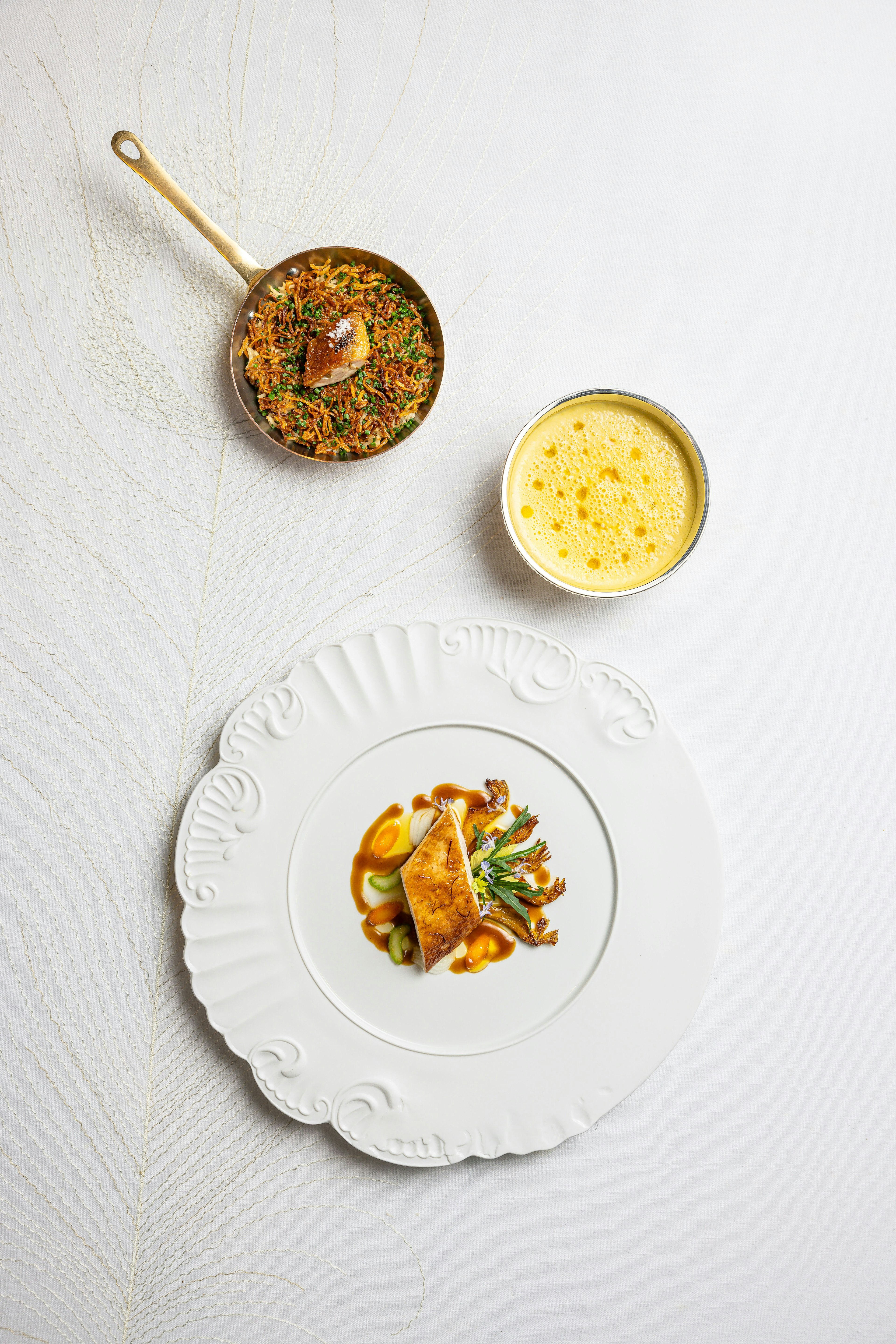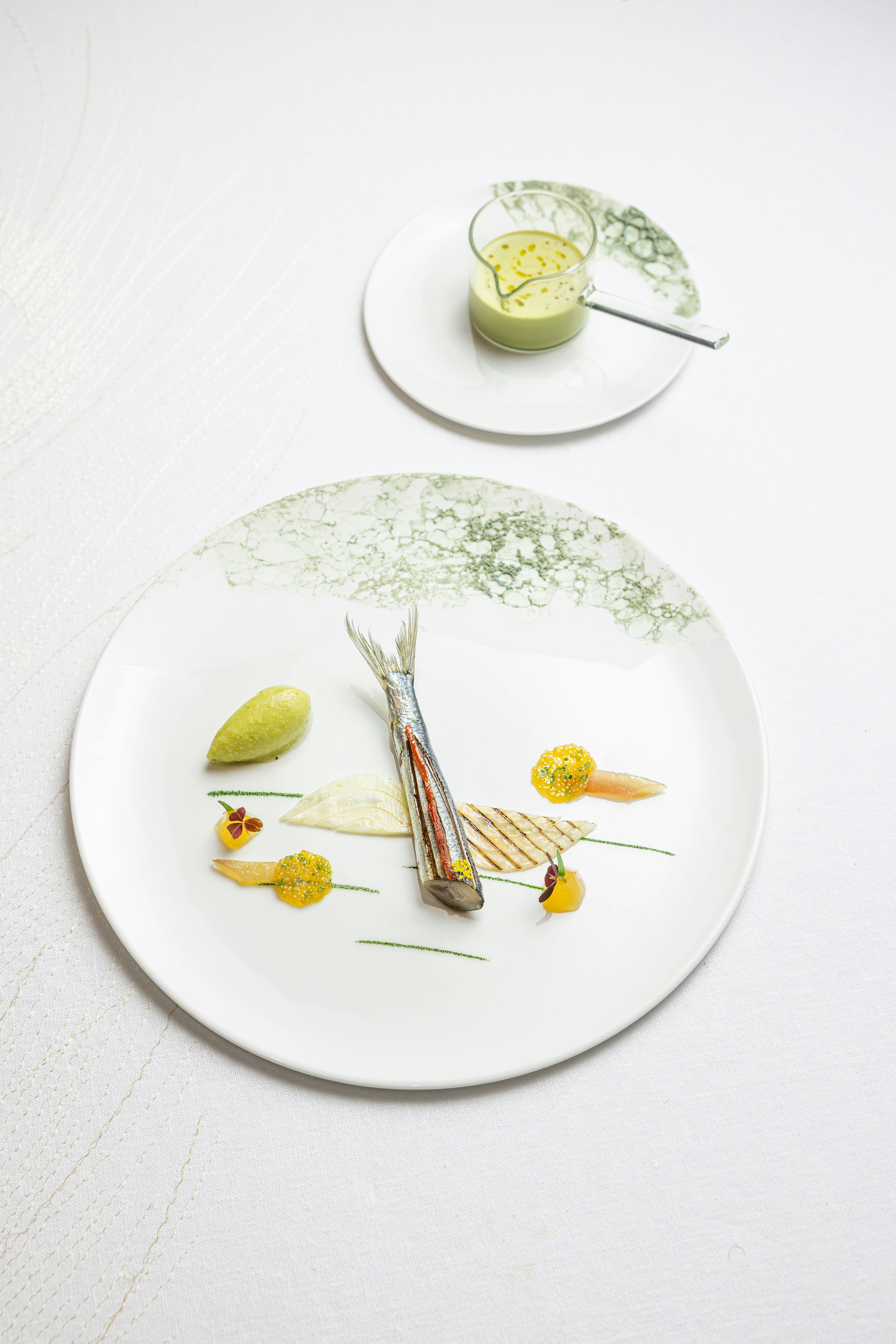 As the curtain comes up, the sauce is centre stage. Arnaud Donckele has donned the apron of a master perfumer. That of a “nose” paying homage to the four seasons as manifested in the sauce, elevated from its standard supporting role to take the lead in this theatre where time has suspended its flight.