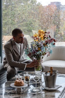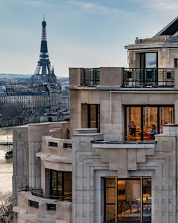 From the private balcony, admire the distinctive Parisian colour palette, with the gold hues of the City of Light's iconic landmarks and zinc rooftops combining with stunning views of the Louvre and the Eiffel Tower.