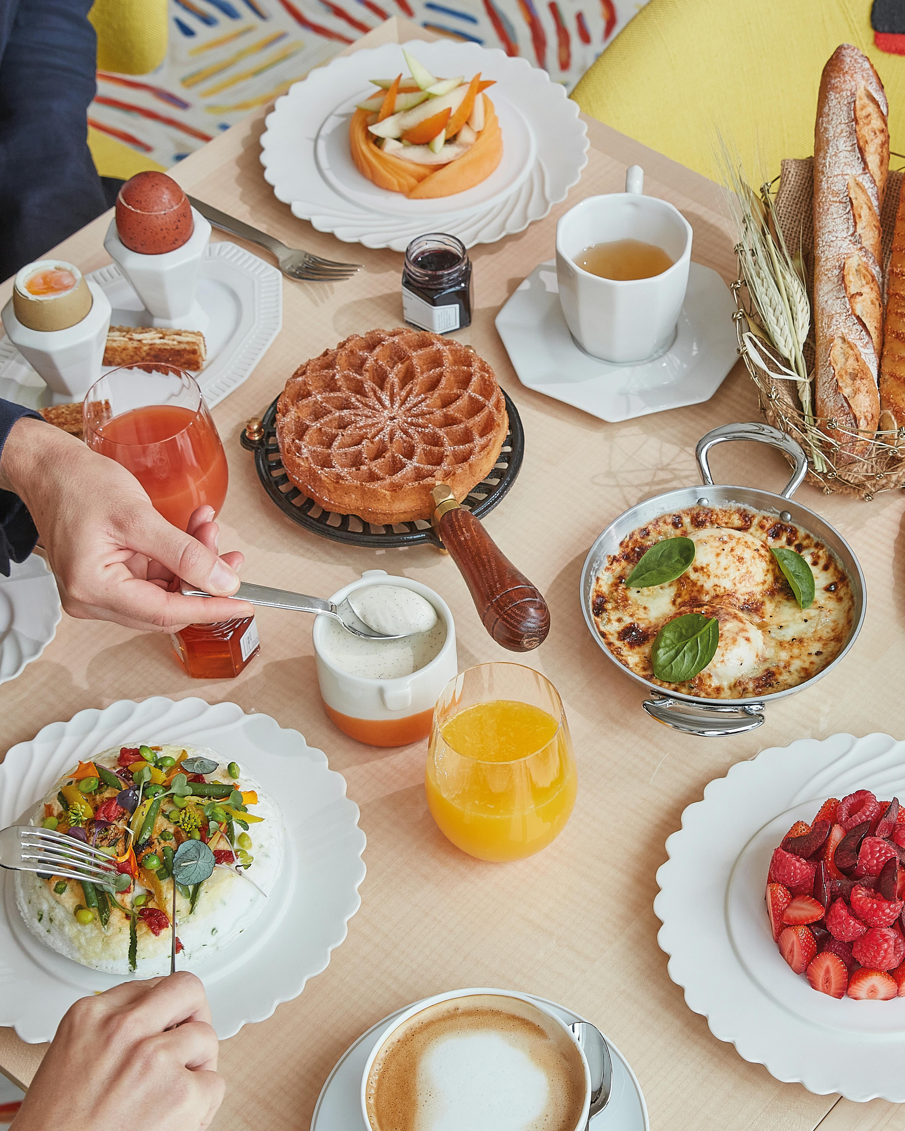 Generous à la carte breakfast for two guests showcasing classics of French cuisine and international varieties.