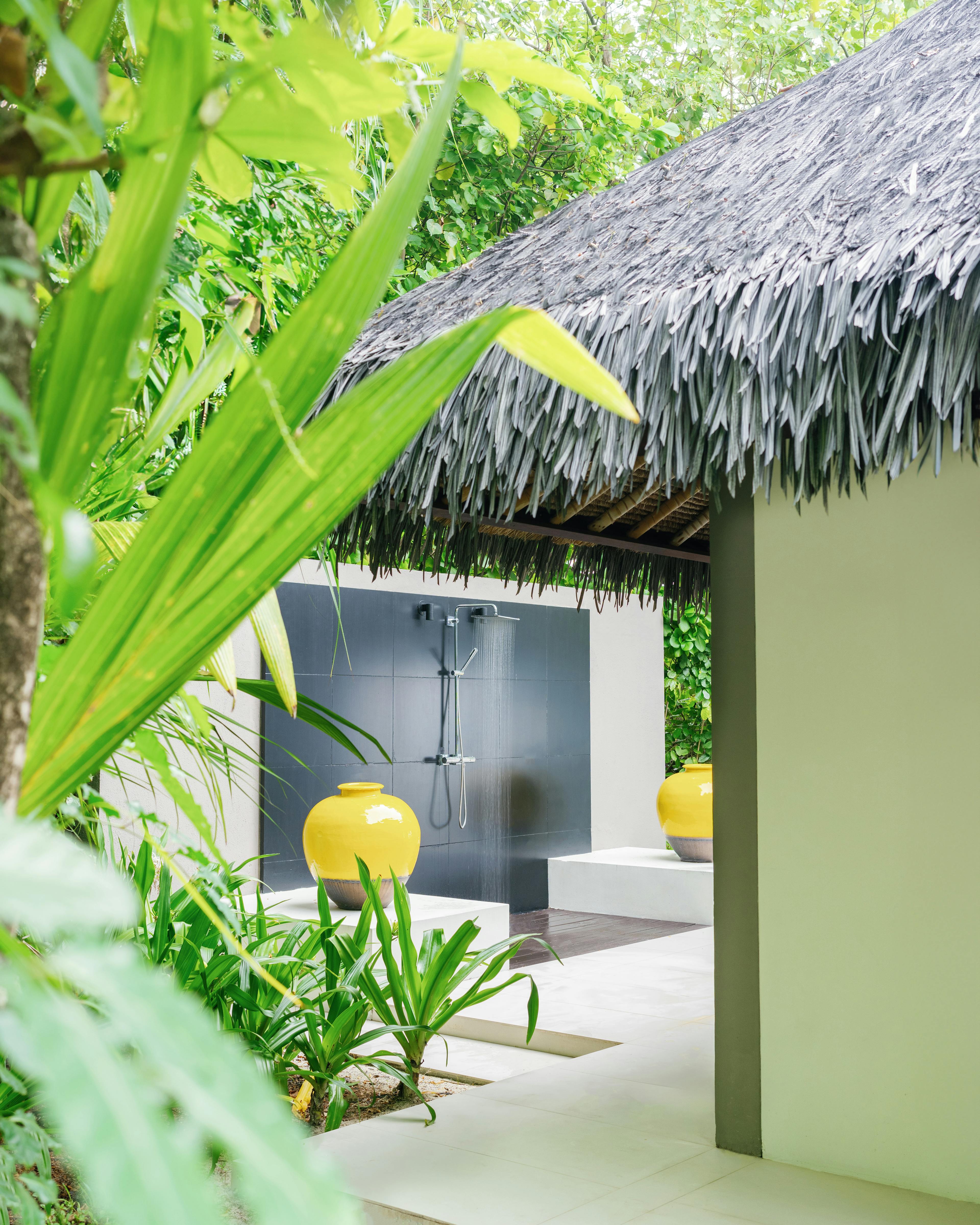 A lush jungle on one side, the endless ocean on the other. Monumental doors partition the villa into three grand areas: a light-filled living room with a powder room, sumptuous bedroom with a double dressing room and a generous bathroom with an indoor and outdoor rain shower, dual-vanities, separate toilet and oversized bathtub.