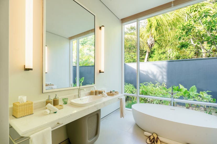 Each villa welcomes lavish indoor and outdoor spaces, including spacious bathrooms and adjoining dressing rooms, as well as thoughtfully-designed living spaces that seamlessly extend to a tropical outdoor patio.