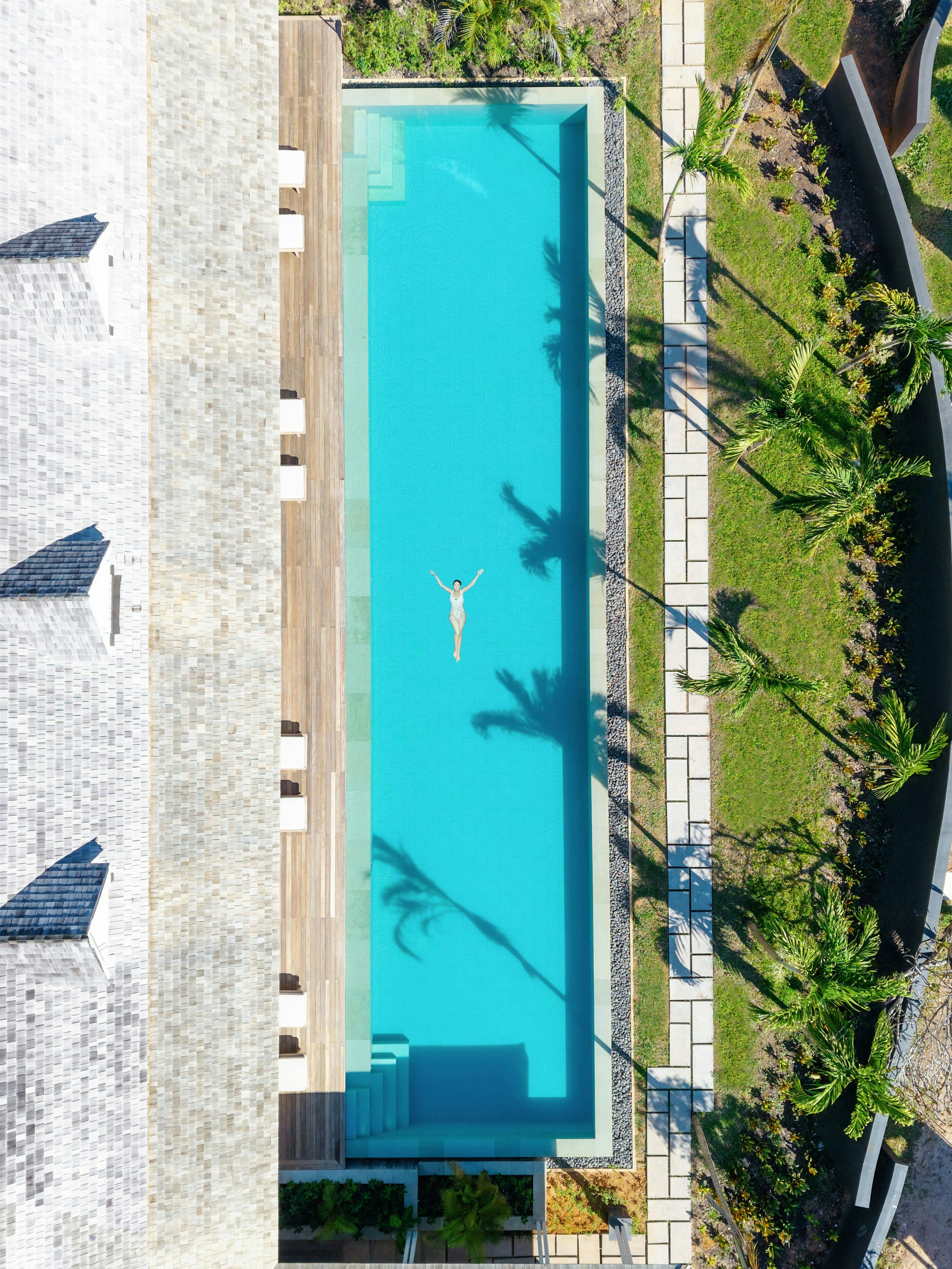 Facing the Gym, a 25-metre pool basks in the noon sun, inviting vigorous swims.