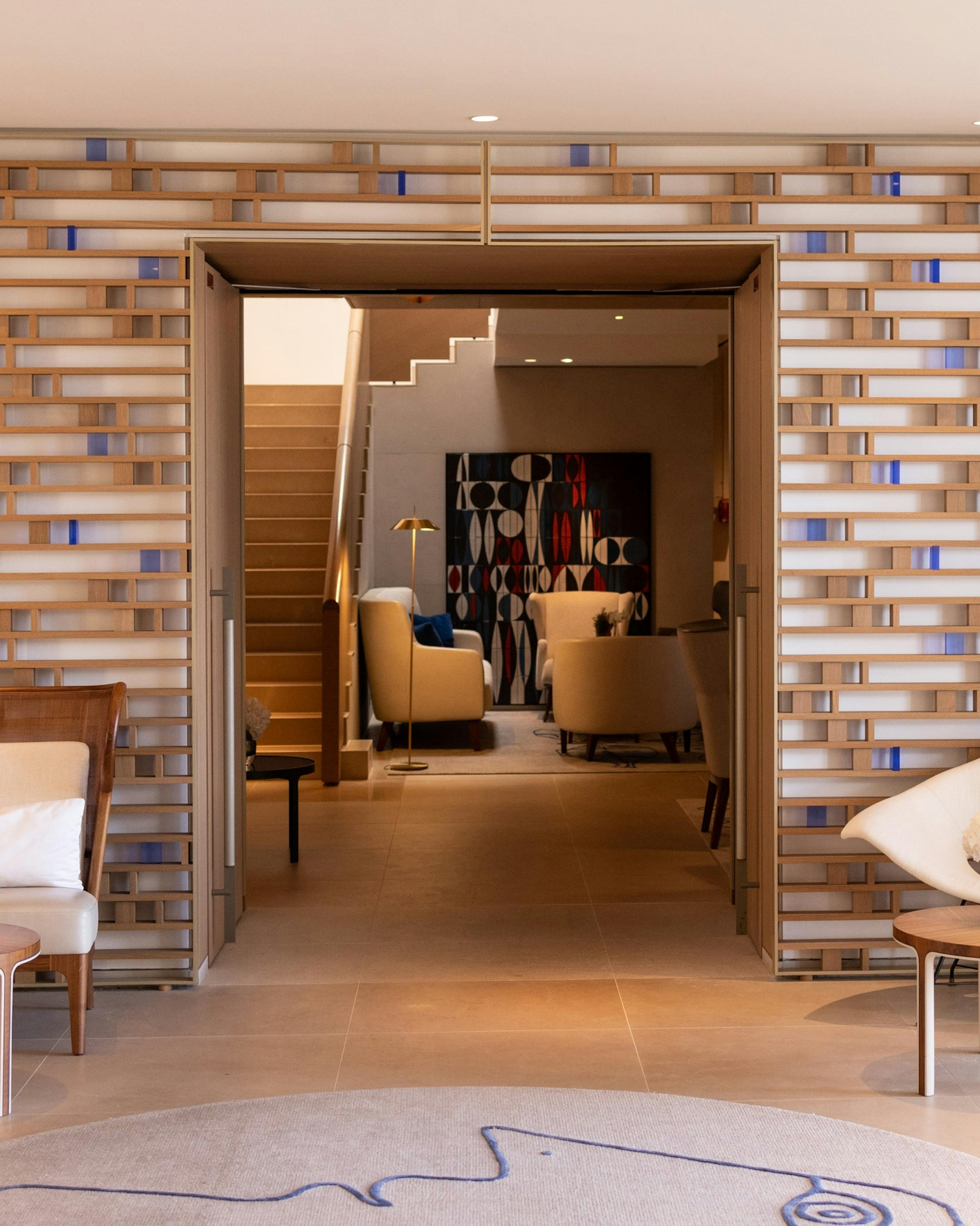 Designed by famed architect Jean-Michel Wilmotte, the Maison exudes the same iconic charm of comfort and seaside pleasure that initially made the property so iconic, now enhanced by bursts of vibrant modernity complemented by soft earthy materials. Signature Riviera Blue harmonises with delicate ivory tones, echoing the surrounding environment. The décor is heavily influenced by the dreamy light of the Mediterranean, playing with translucent materials and screens to create playful shadows.
