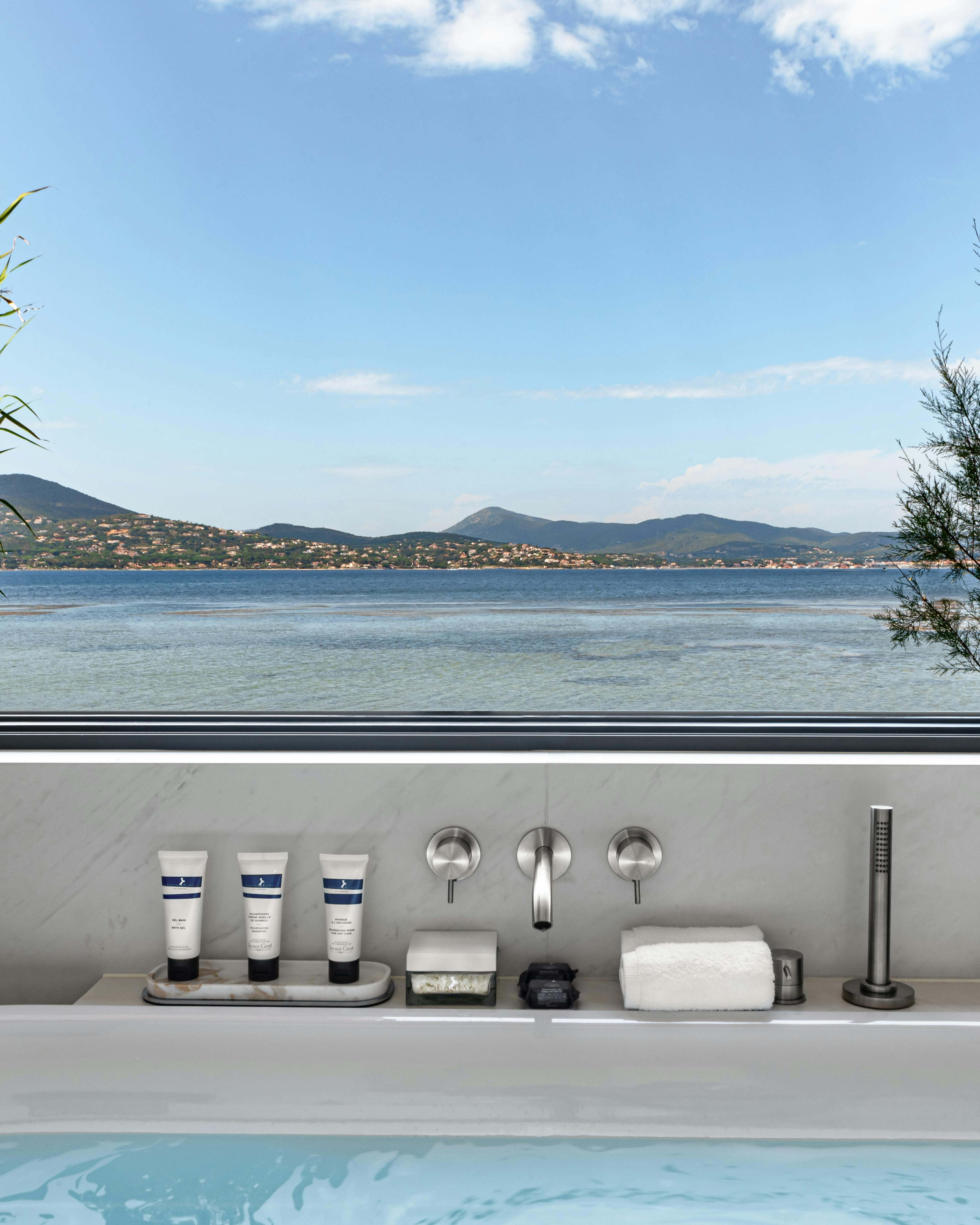 This Cheval Blanc Maison boasts a vibrant signature colour echoing a nautical life on the deep blue sea. In St-Tropez, the striking blue hue evokes the dazzling panoramas of the Bay of Saint-Tropez and the open sky of the Côte d'Azur. Adorning Ambassadeur attires, gifts and amenities, linens and apparel, Riviera Blue is the quintessence of a life at sea.