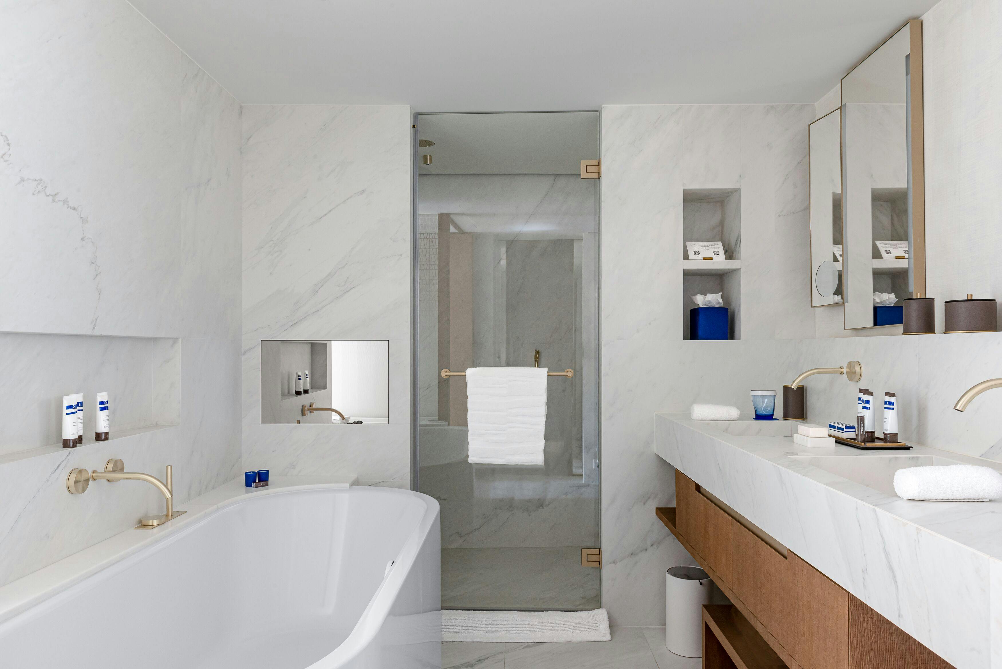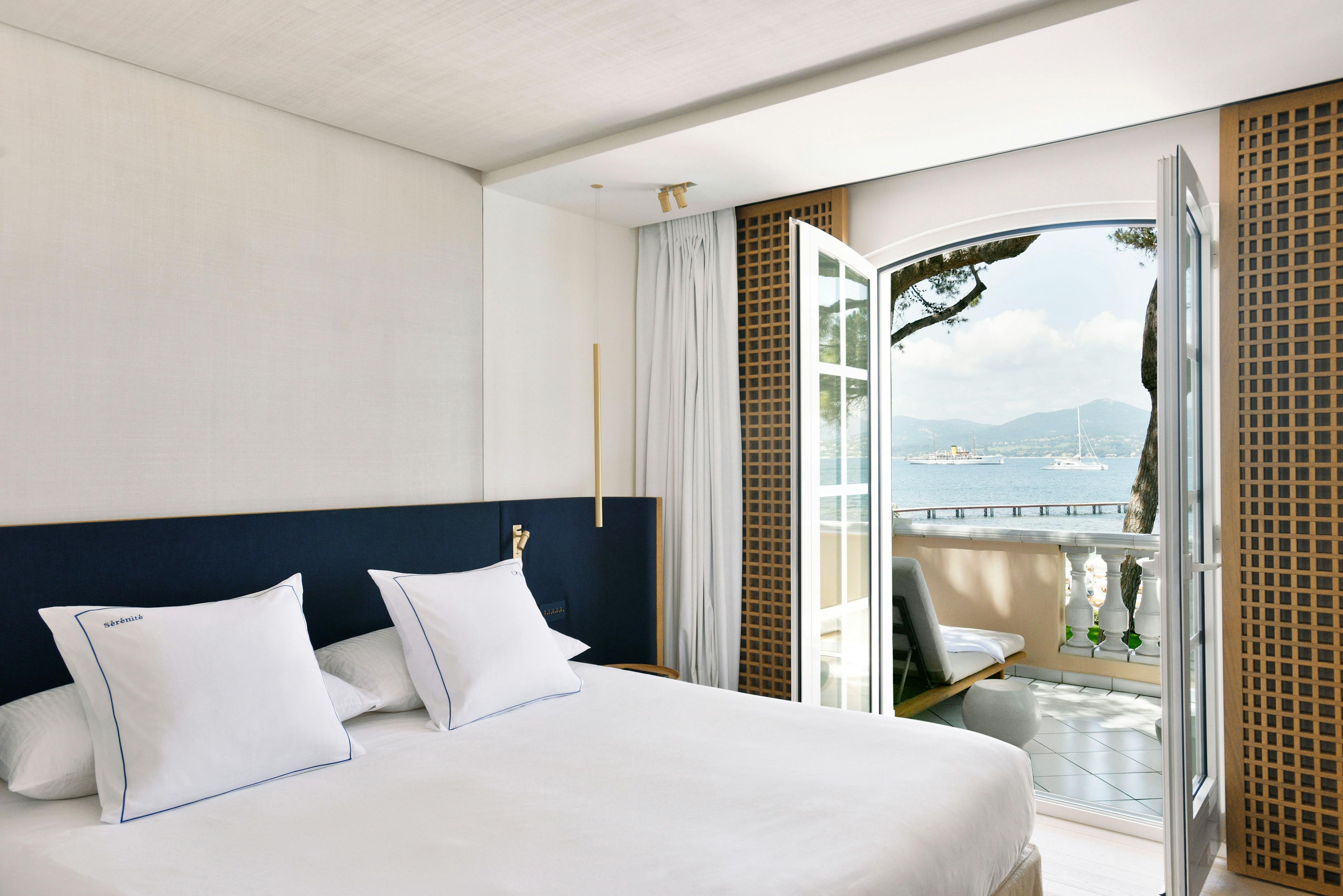 Covering 45 sqm (495 sqft), the Sea Suite offers a breathtaking panorama over the Bay of Saint-Tropez. Designed by Jean-Michel Wilmotte with a contemporary Tropezian flair, it features a grand bedroom, a separate charming living room with a vanity area and a bathroom with a bathtub and walk-in shower.