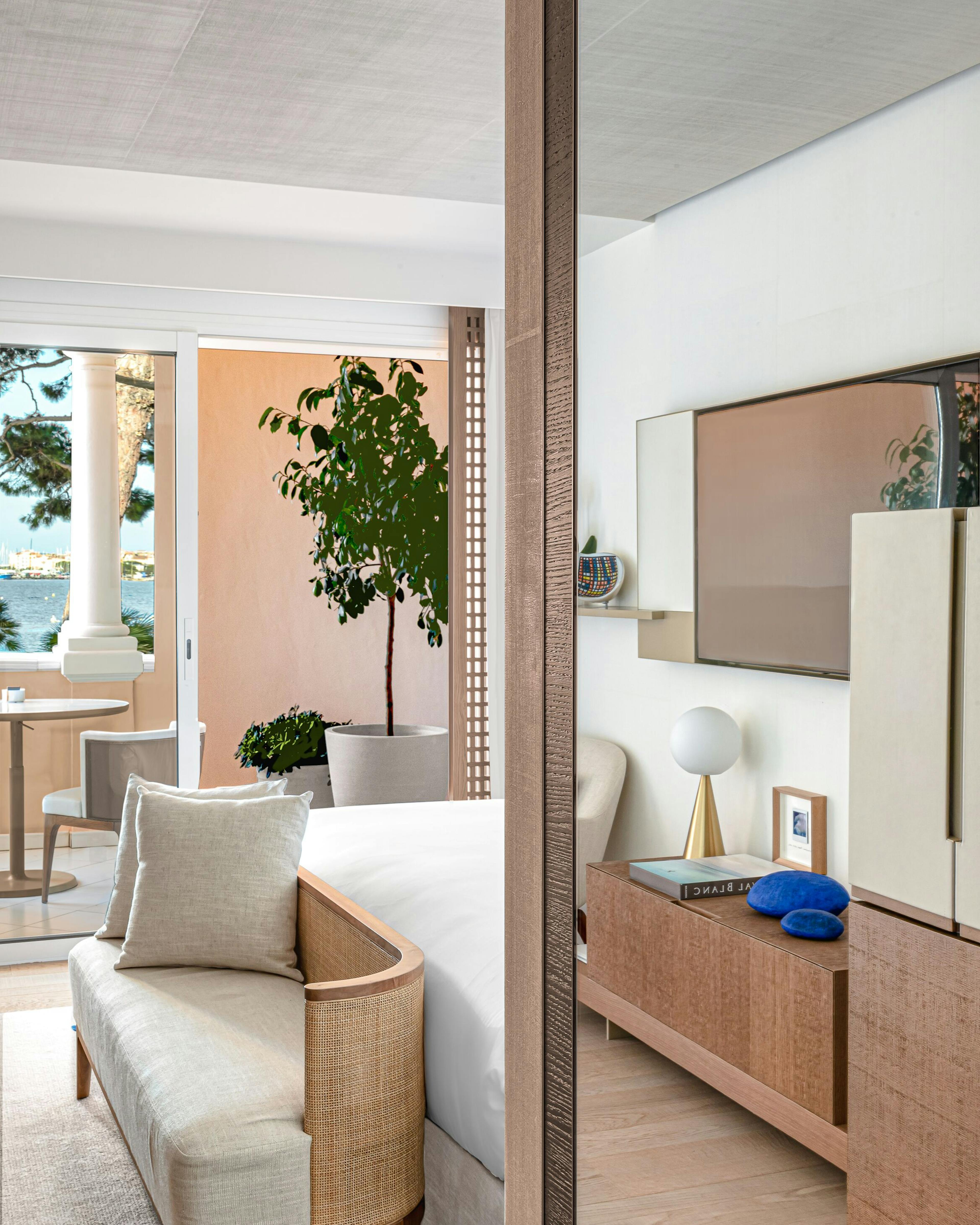 Covering 45 sqm (495 sqft), the Sea Suite offers a breathtaking panorama over the Bay of Saint-Tropez. Designed by Jean-Michel Wilmotte with a contemporary Tropezian flair, it features a grand bedroom, a separate charming living room with a vanity area and a bathroom with a bathtub and walk-in shower.