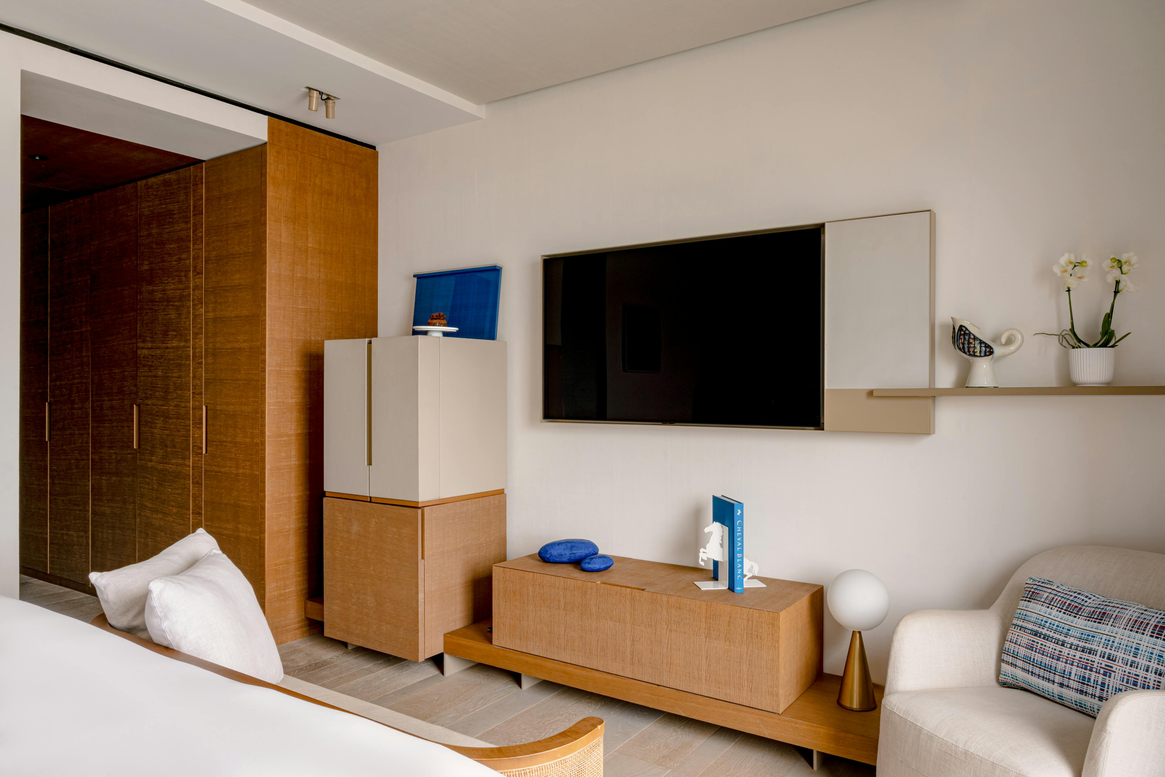 Overlooking the pine trees from the first floor of the Maison, the Prestige Sea Room invites to revel in a Provençal escape staged by Jean-Michel Wilmotte.