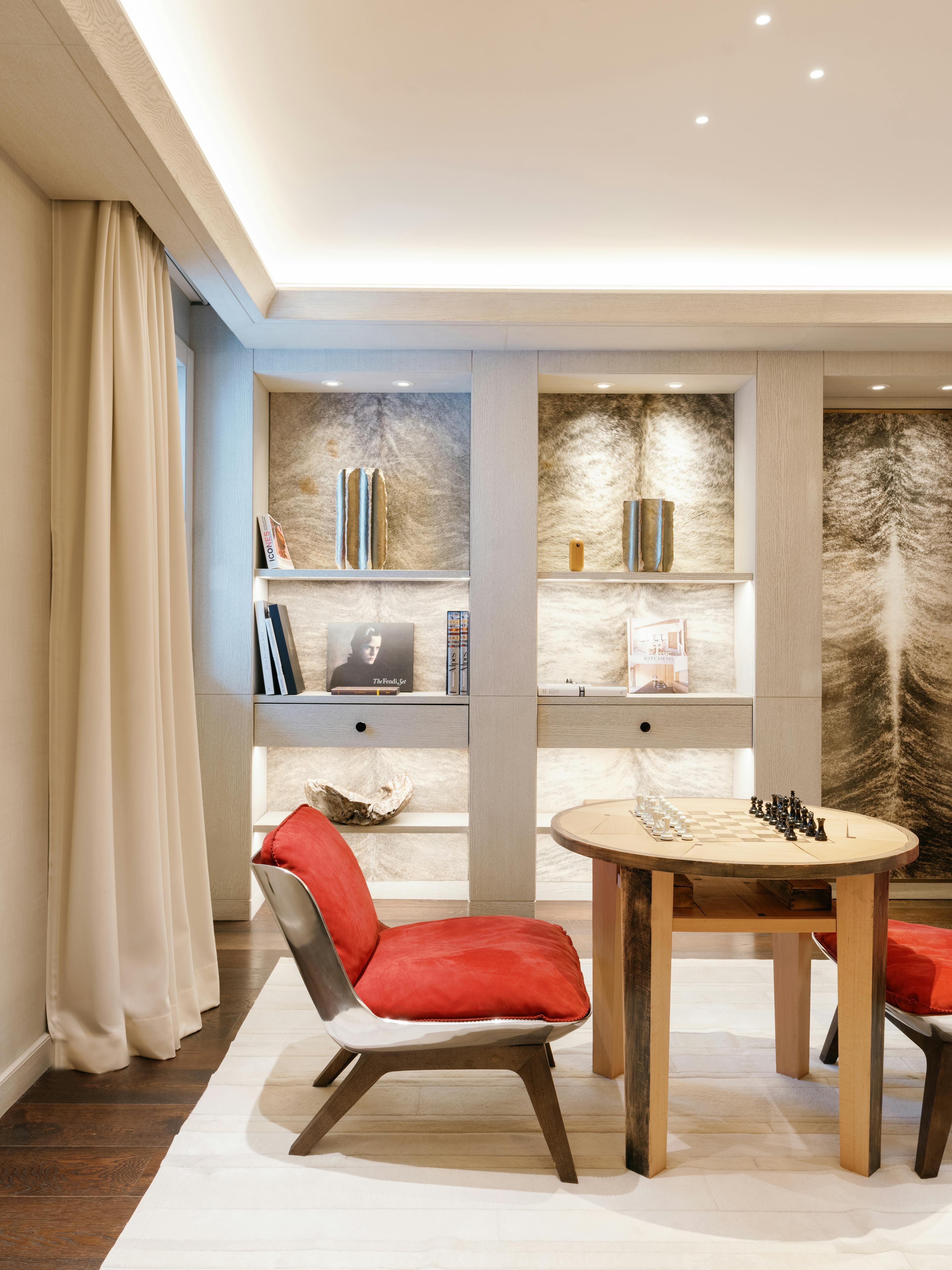 La Suite Duplex Deluxe dévoile un splendide salon, sublimé par des œuvres d'art soigneusement sélectionnées et une salle à manger pour des moments conviviaux de gastronomie.