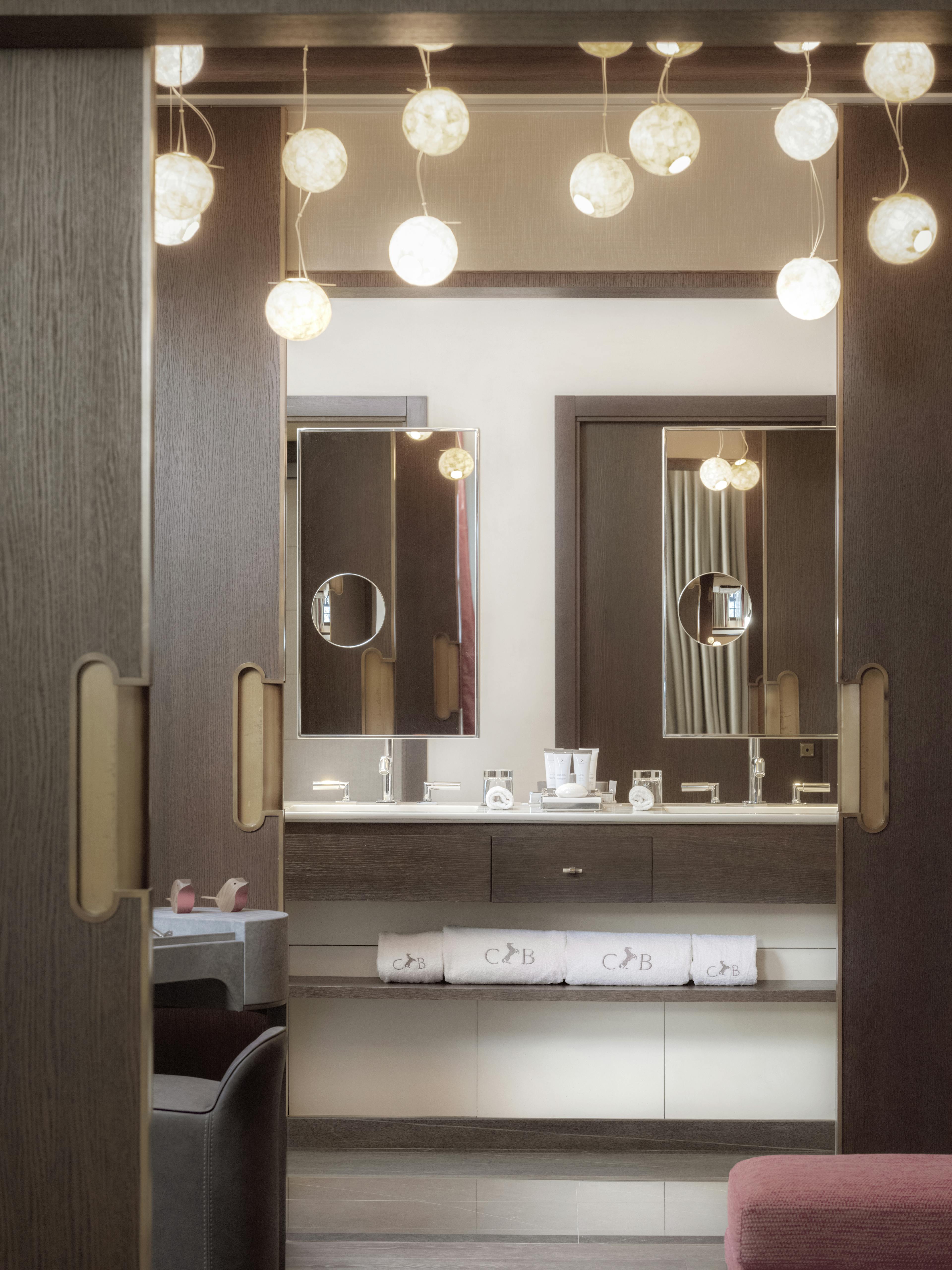 Au premier étage, un second salon invite à la sérénité et mène à la salle de bain équipée d'une baignoire, d'une douche-hammam à chromothérapie et d'un sauna d'un côté, d'une chambre avec son double dressing de l'autre.