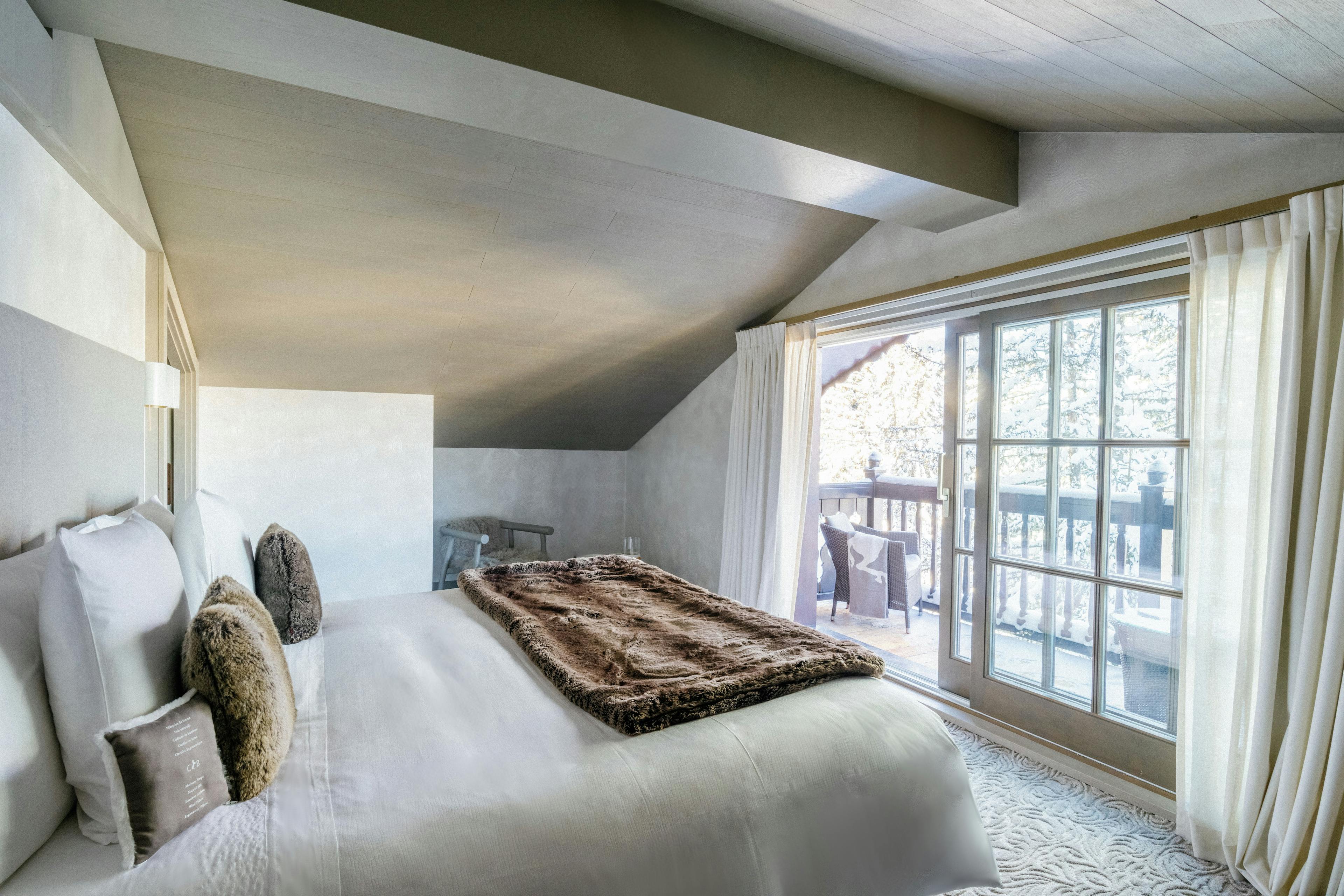 Deux étages de parenthèse hivernale au sommet. Une montagne d'oreillers et quelques nuages duveteux, le cocon rêvé pour se ressourcer au cœur du Jardin Alpin.