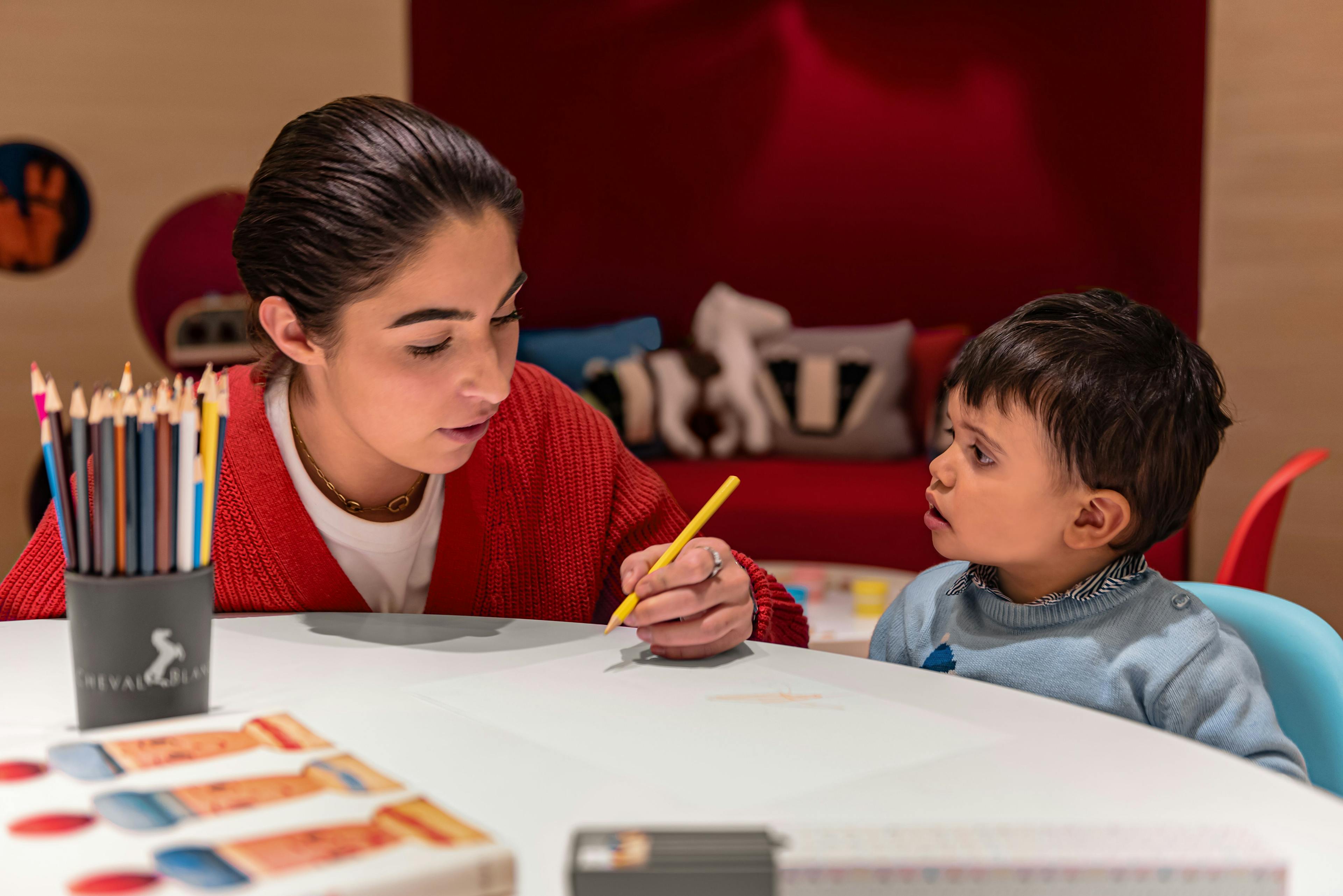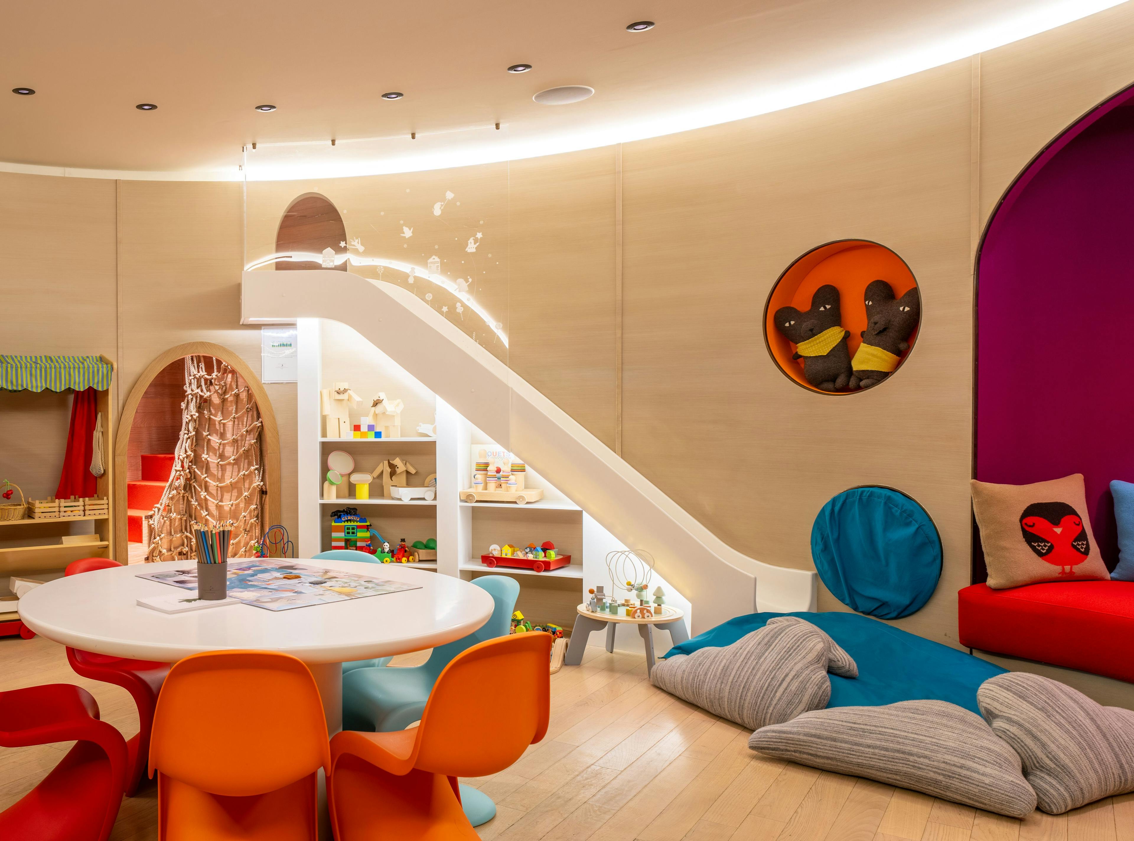 Un chemin de feutre multicolore avec des ballons en guise de lampadaires mène au Carrousel, le royaume des plus petits. D’un coup de baguette magique, Cheval Blanc Courchevel lève le rideau sur un monde entièrement dédié au jeu où alcôves, toboggans et passages secrets sont autant de promesses d’aventures, sous le regard bienveillant des Ambassadrices du Carrousel.