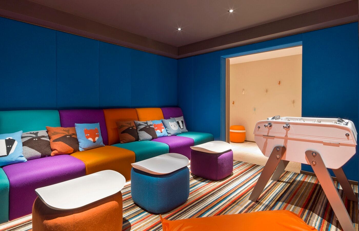 Cocon aux allures futuristes, Le Paddock est le lounge préféré des adolescents. Equipé d'un babyfoot conçu sur mesure et de nombreux jeux interactifs, il peut aussi se transformer en salle de projection privée pour un moment de détente en famille.