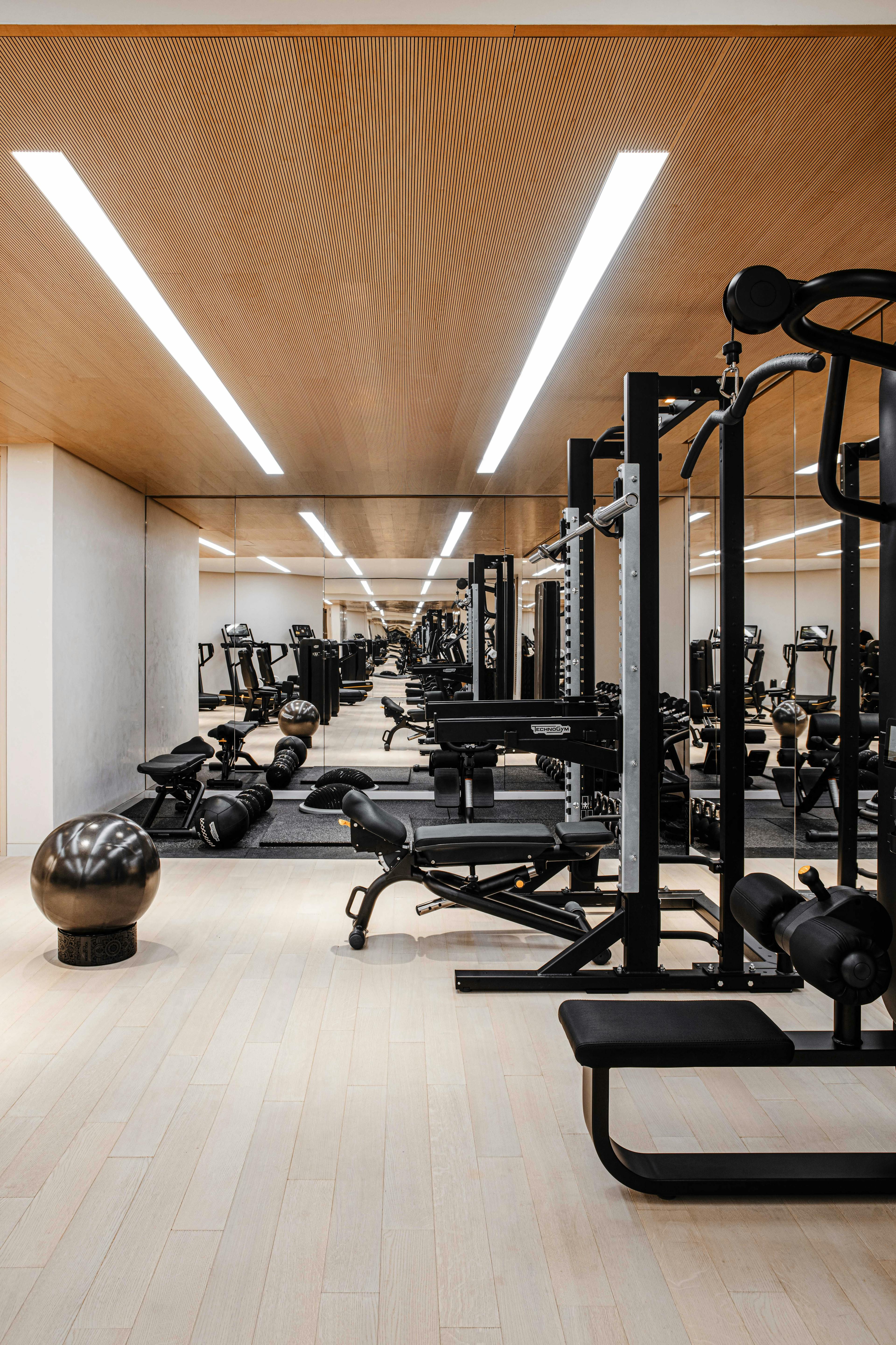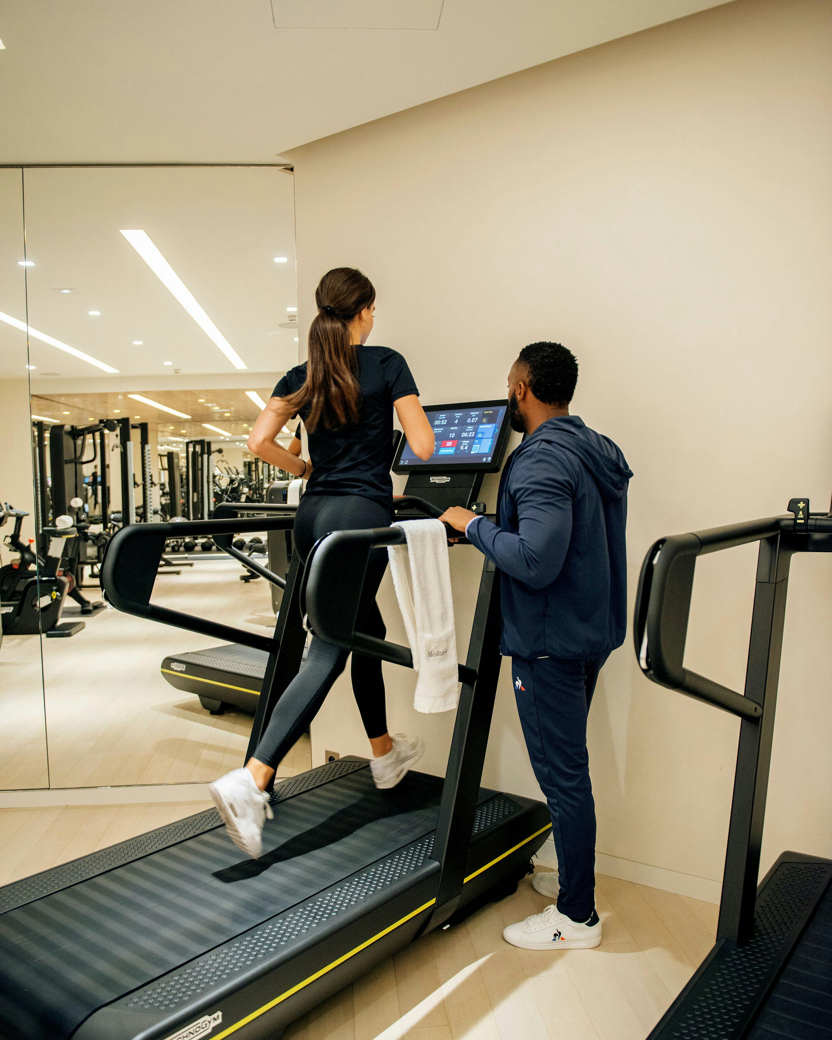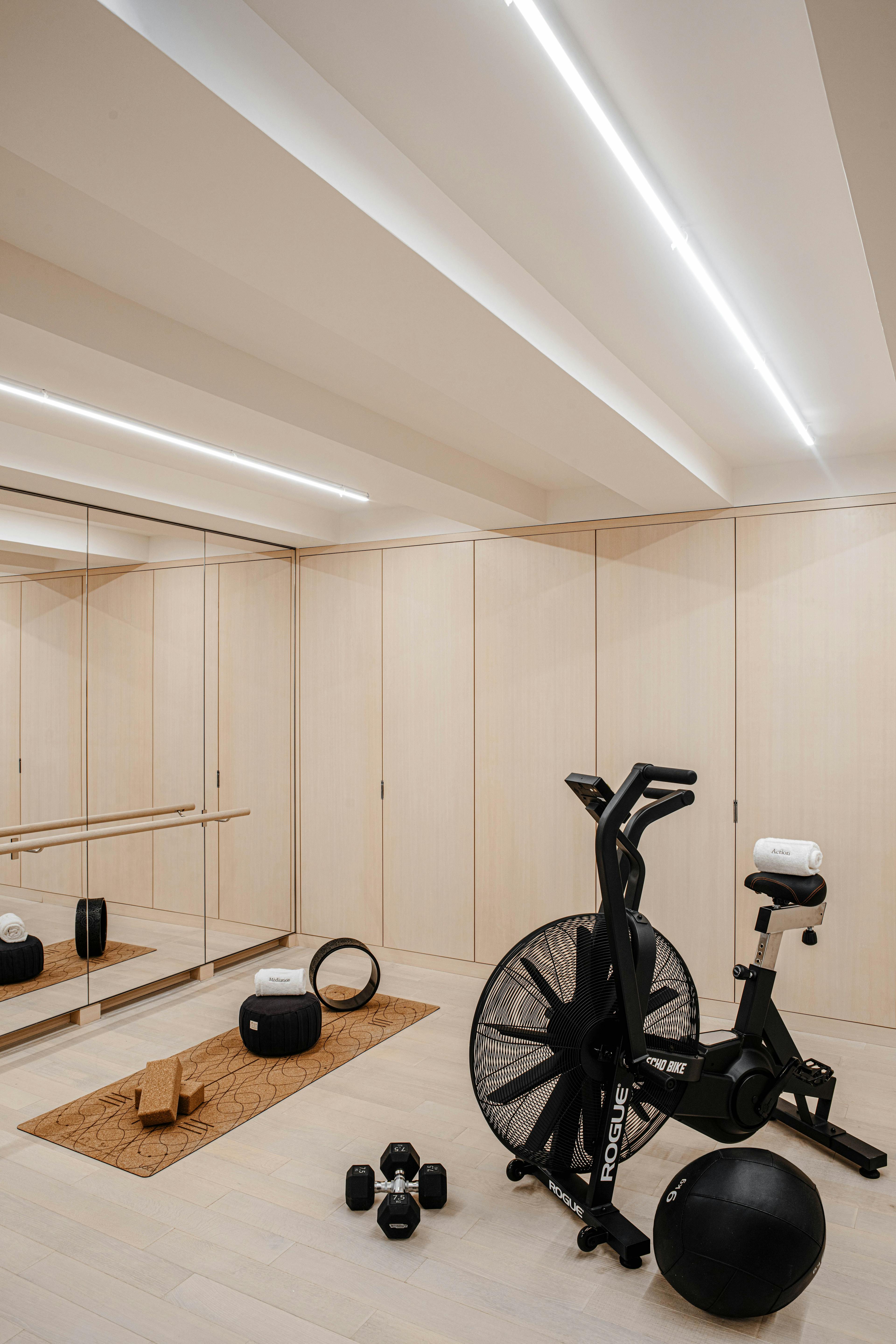 À l’abri des regards, une salle de coaching privé a été pensée pour répondre à toutes les exigences – cardio, boxe, cross training, yoga, les possibilités sont infinies. Face au miroir, les entraînements peuvent même être projetés sur grand écran pour une expérience encore plus immersive.