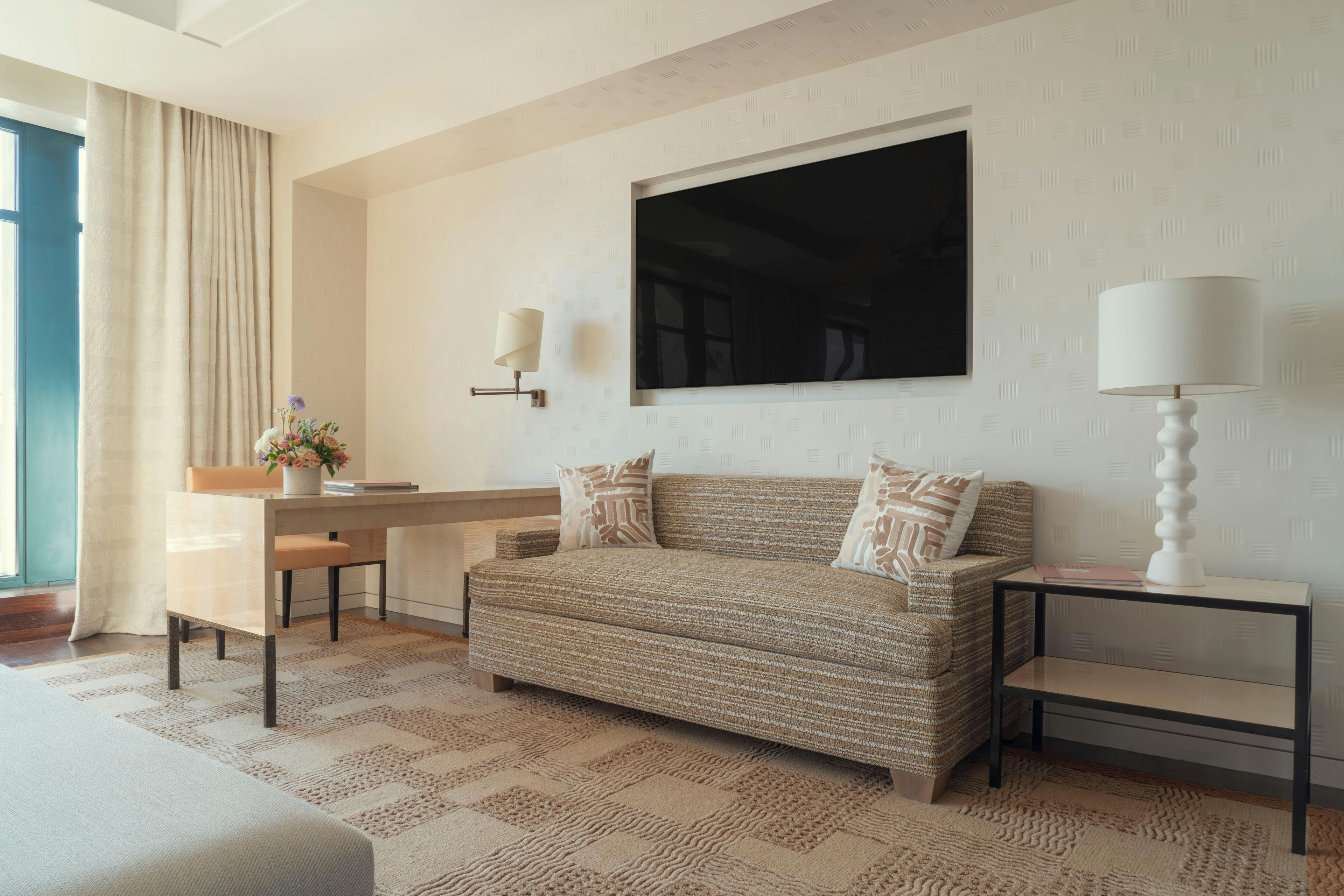 Imaginée par Peter Marino dans des tonalités douces et chaleureuses, la Junior Suite Balcon séduit par ses volumes et son style contemporain inspiré par l’influence Art déco. Elle accueille également une salle de bain en marbre avec une grande baignoire et une douche-hammam à l’italienne, ainsi qu’un dressing indépendant.