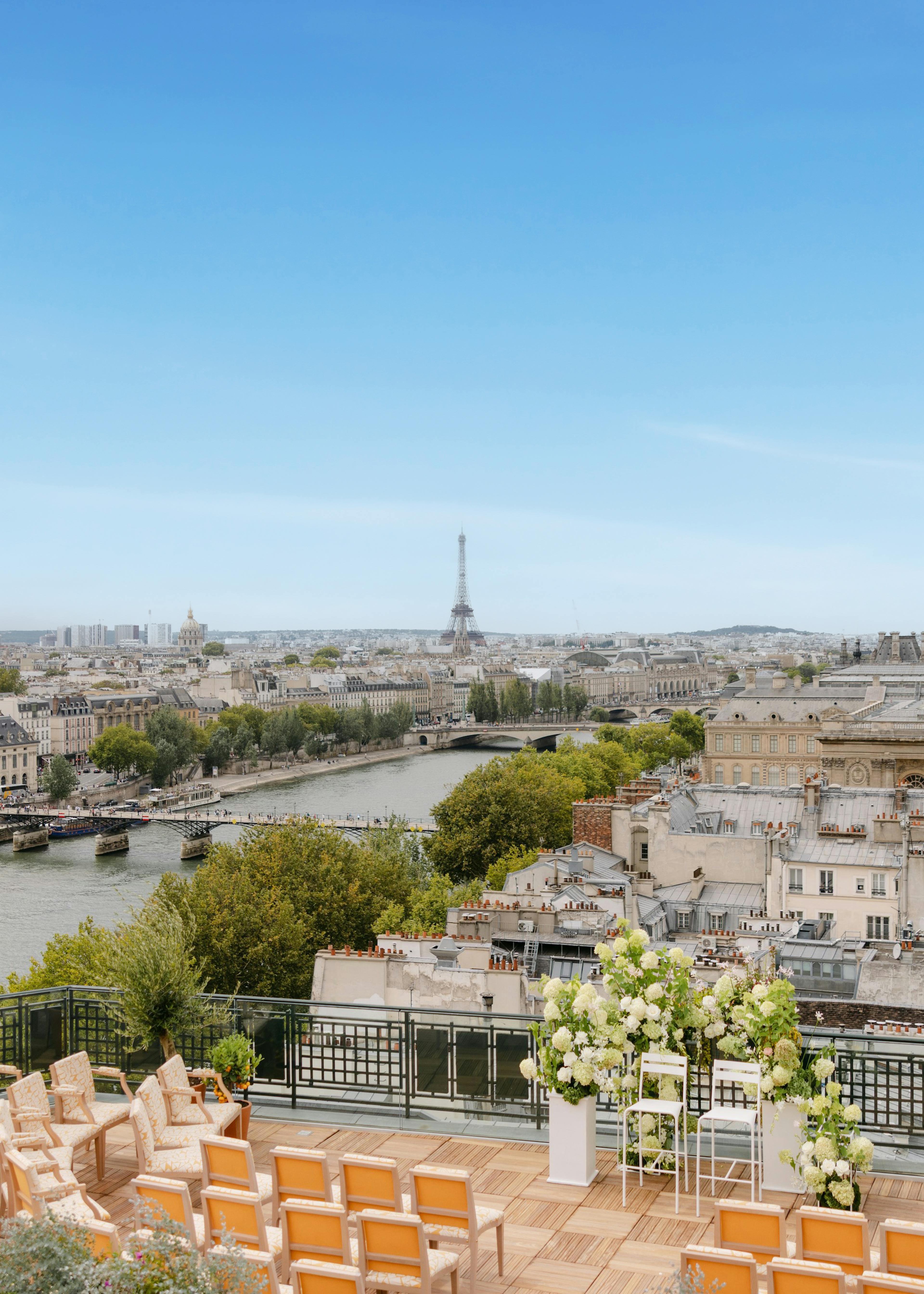 En apesanteur, au 10ème étage, le toit-terrasse de Cheval Blanc Paris offre un cadre exceptionnel et hors du temps pour vos célébrations enchantées.
