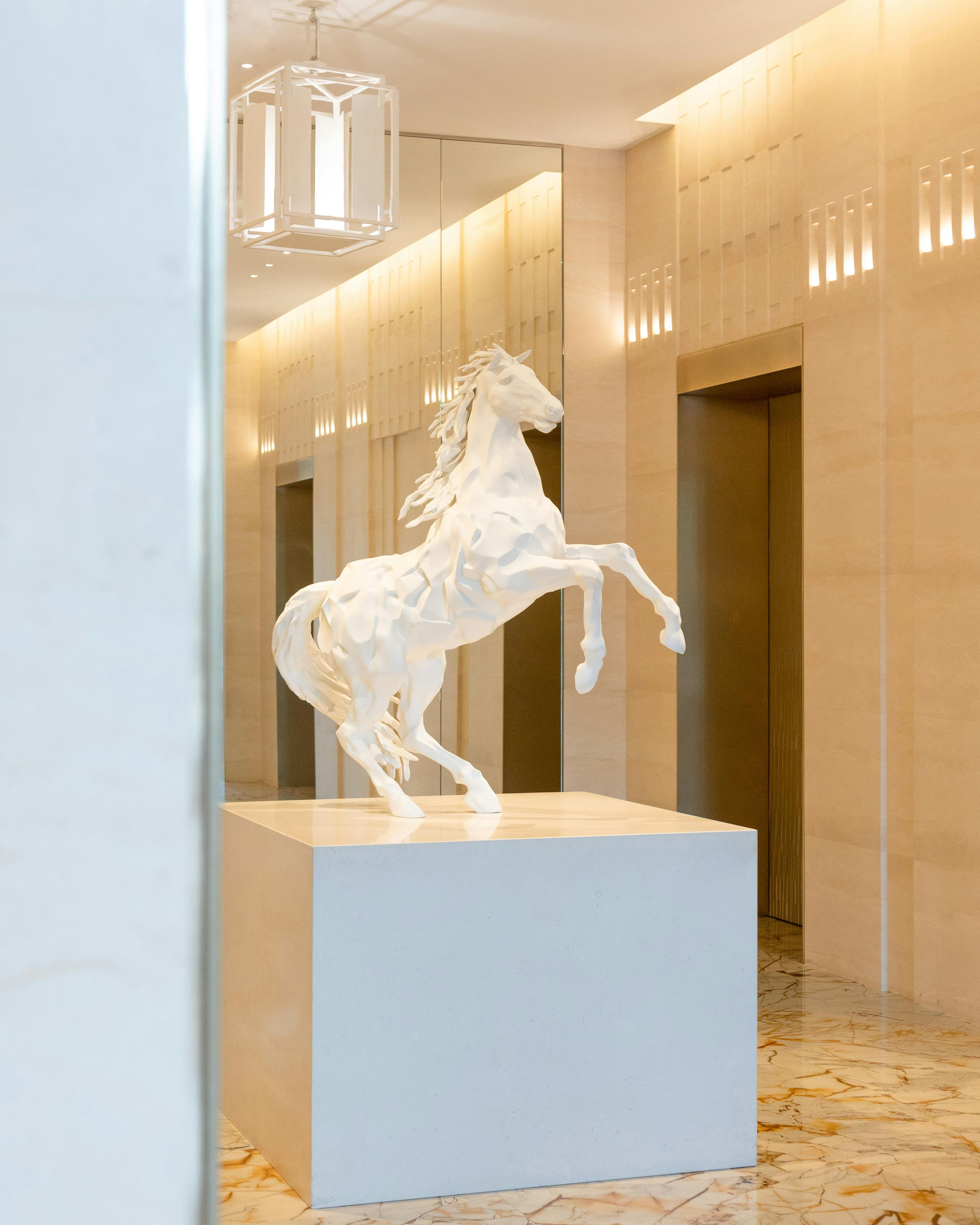 Richesse des matières, des textures et des formes. Kaléidoscope d'ors et de couleurs. Collection d'œuvres d'art, de pièces réalisées sur mesure et de curiosités chinées ici et là. L'esprit de Cheval Blanc Paris, mis en scène par l'architecte Peter Marino.