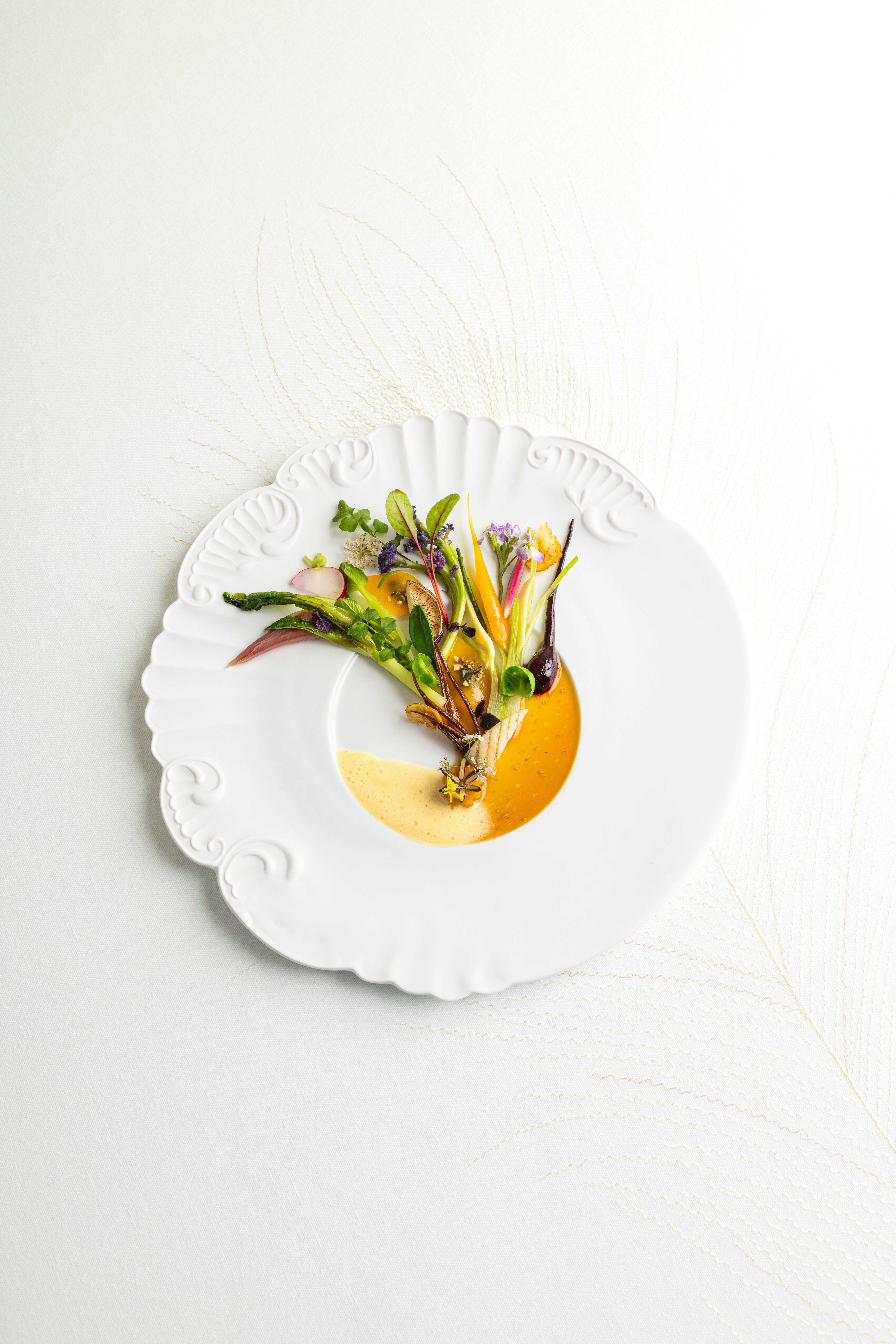 Au commencement, la sauce. À Plénitude, Arnaud Donckele a enfilé le tablier d’un parfumeur intimiste. Celui d’un nez rendant hommage sur les quatre saisons à la sauce, éternel second rôle appelé à jouer le premier dans cette bulle où le temps a suspendu son vol.