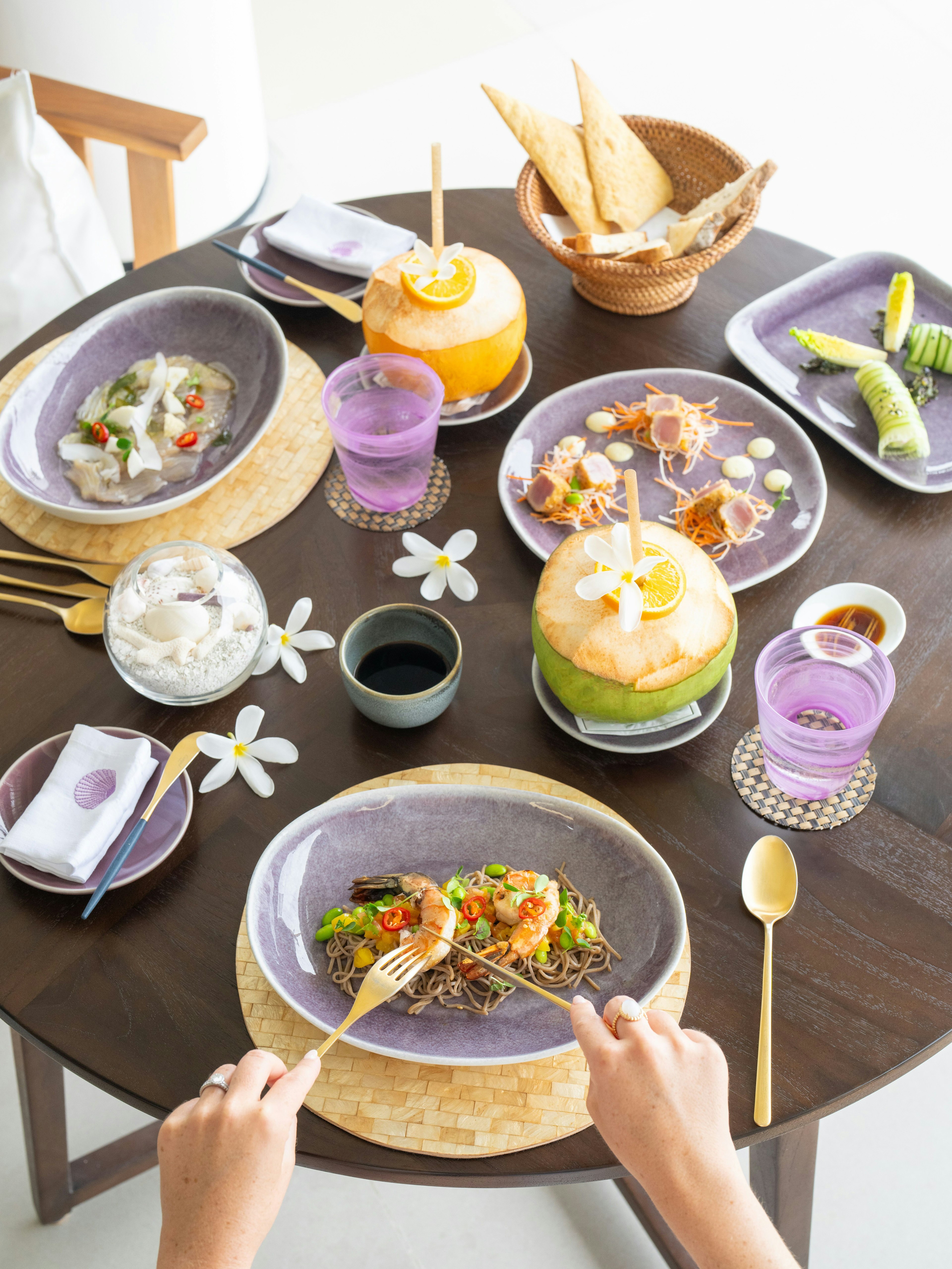 Le regard vers le turquoise du lagon, le majestueux cercle solaire et l'esprit vagabond, le White propose une cuisine inspirée des parfums de l'océan Indien du matin au soir.
