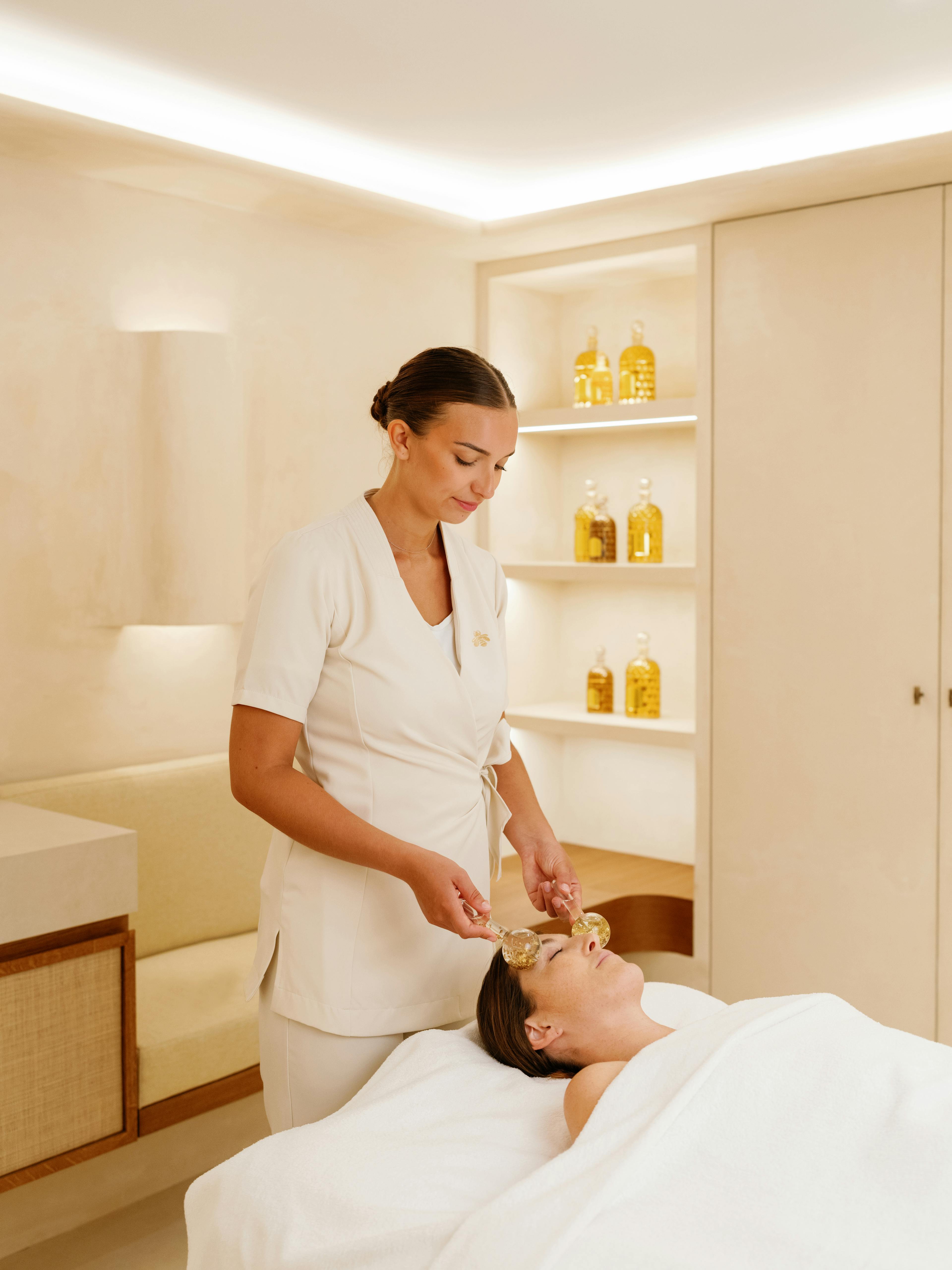 Avec son massage exclusif visage et corps, Guerlain propose un rituel complet pour révéler une silhouette magnifiée. Le modelage du visage redéfinit les traits, tandis qu'une exfoliation sèche et des gestes experts de pompage et de drainage stimulent le corps en un temps record pour le sublimer de fond en comble !