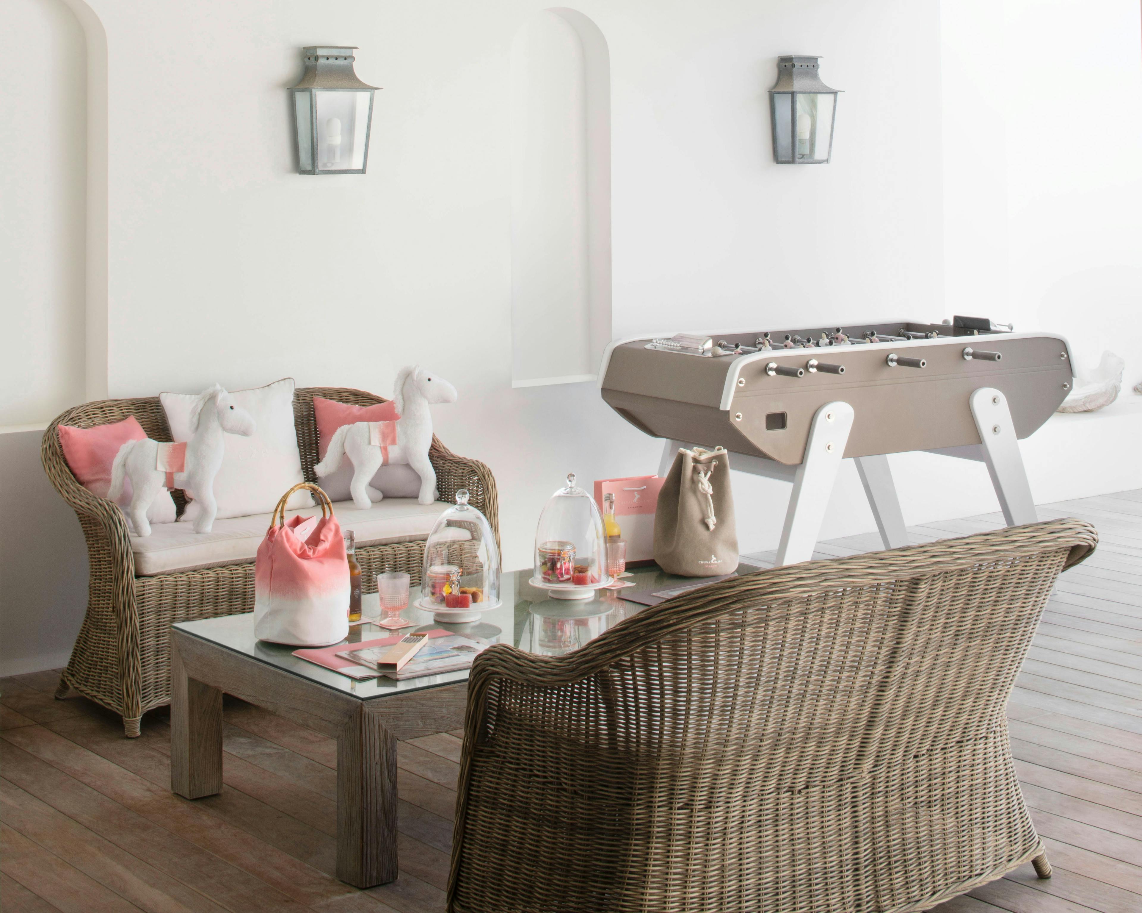 Mini mains, mini pieds - un monde immense à découvrir. La Maison accueille les plus jeunes hôtes avec une collection d'attentions et de présents imaginés juste pour eux. Les bébés se laissent bercer par Morphée dans de jolies parures brodées d'étoiles et de petits chevaux. Les enfants accourent joyeusement dans leurs petits chaussons et peignoirs, avant d'enfiler leurs tongs à tatouages pour laisser leurs empreintes CB sur la plage.