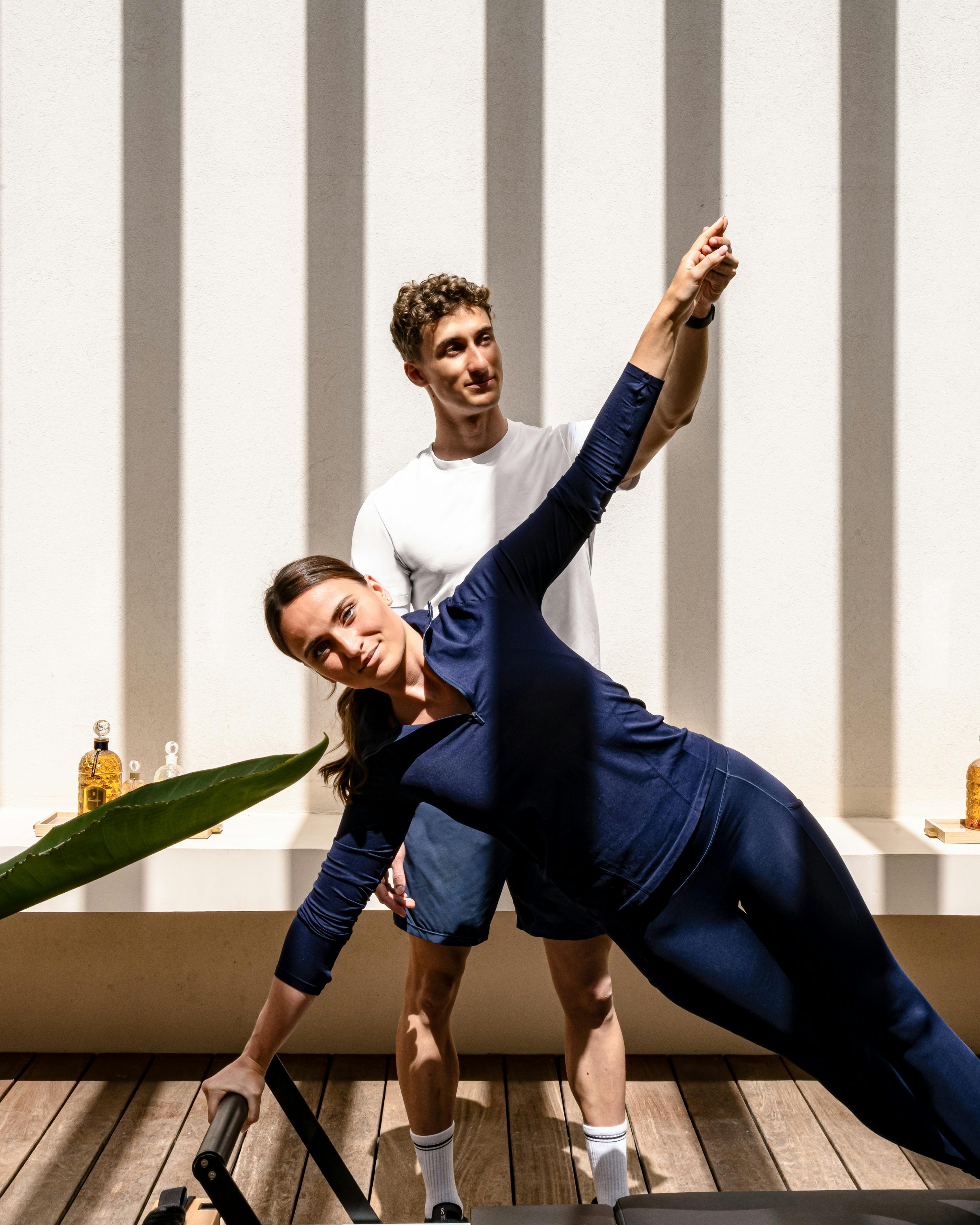 Le salon d'entraînement dispose également de deux pilates reformer pouvant être disposés selon vos envies, en intérieur ou en extérieur, pour vos sessions personnalisées en solo ou en duo.