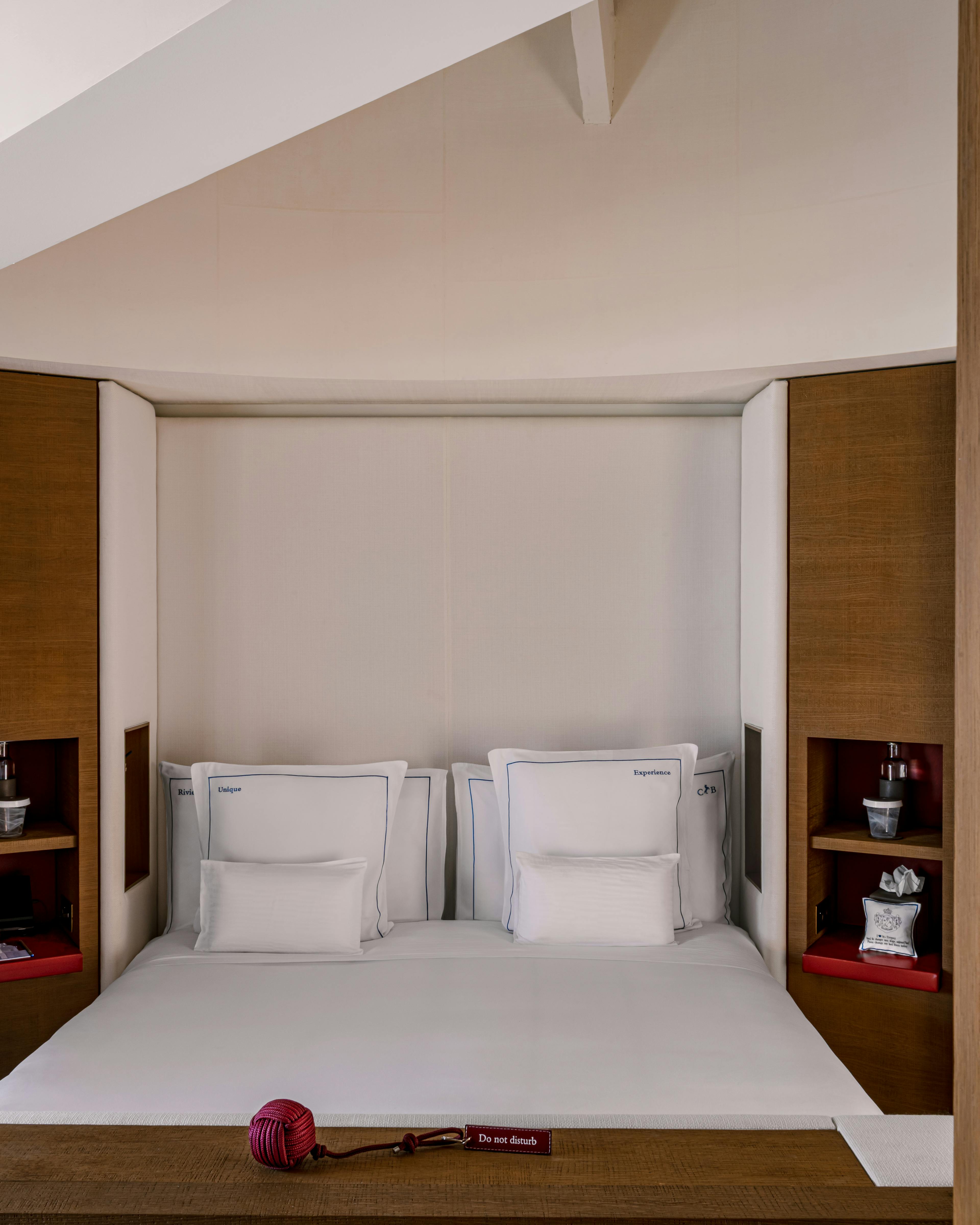 Nichée au premier étage, la Chambre Atelier Mer invite à une escapade bohème en Provence. Tonalités terracotta et crème se mêlent dans un colorama imaginé par Jean-Michel Wilmotte en hommage à l’esprit Riviera.