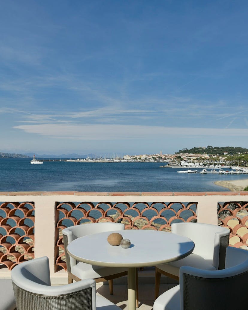 Véritable havre de paix, la Suite Duplex Pinède s’étend sur 90 m² et offre une expérience résidentielle exclusive mise en scène par Jean-Michel Wilmotte.
