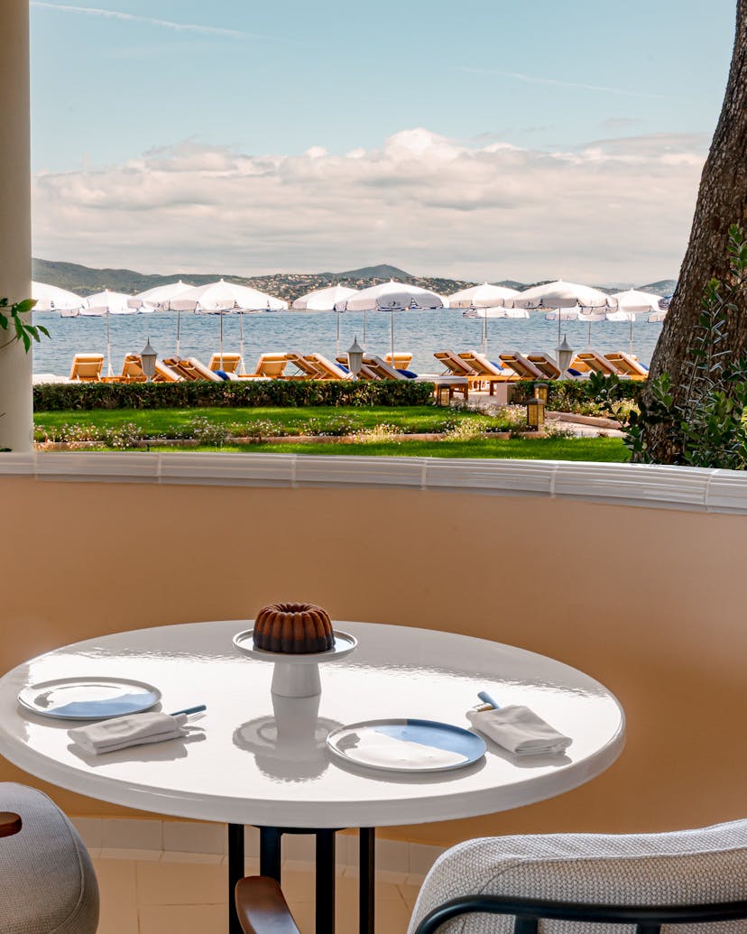 La terrasse privative invite à se prélasser face à la mer et aux pins parasols iconiques de la Maison.