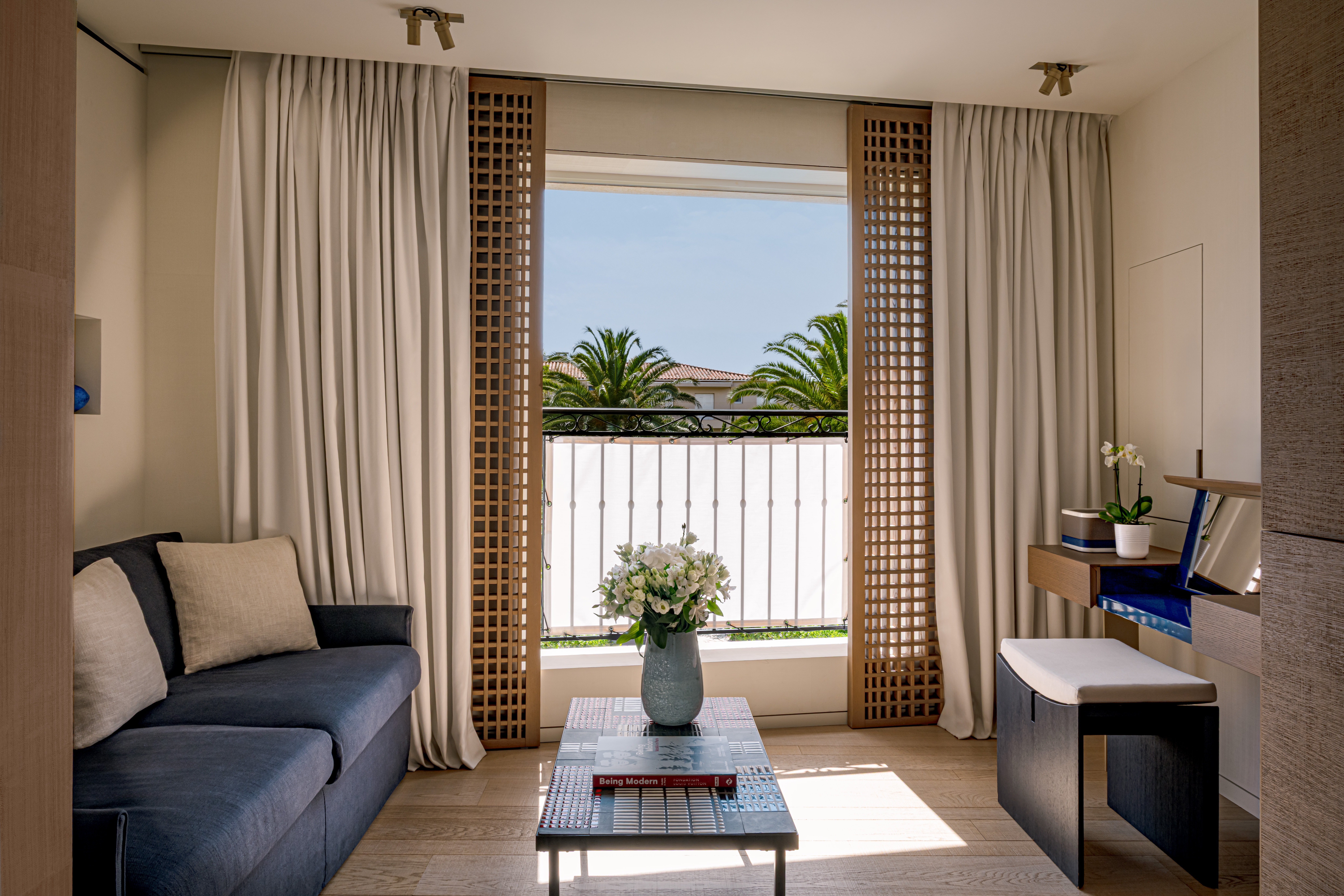 Située au rez-de-chaussée face à la piscine de la Maison, la Junior Suite Vue Piscine invite à profiter de la douceur de vivre et des plaisirs de bord de mer.