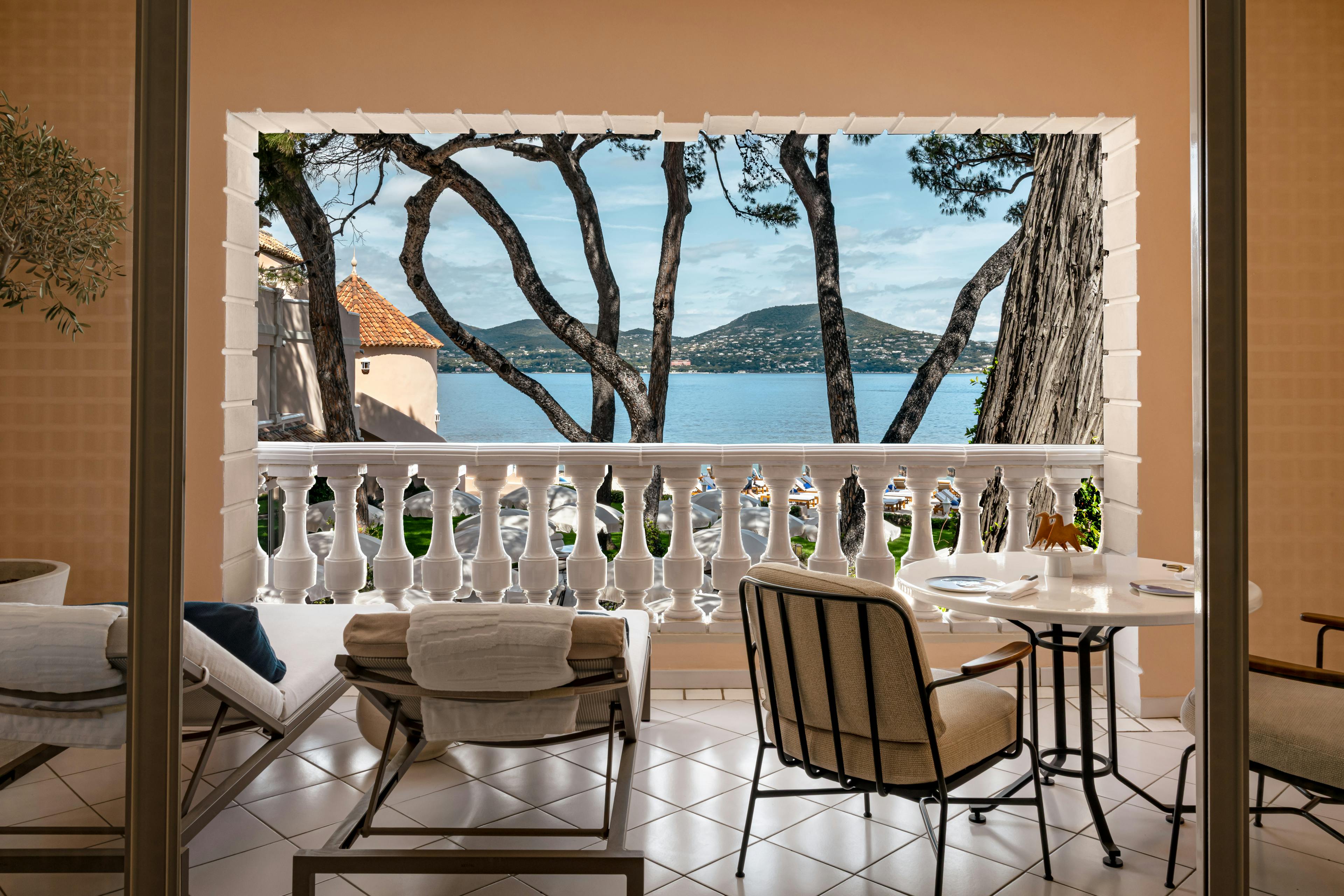 La terrasse dévoile des vues resplendissantes sur le golfe de Saint-Tropez.