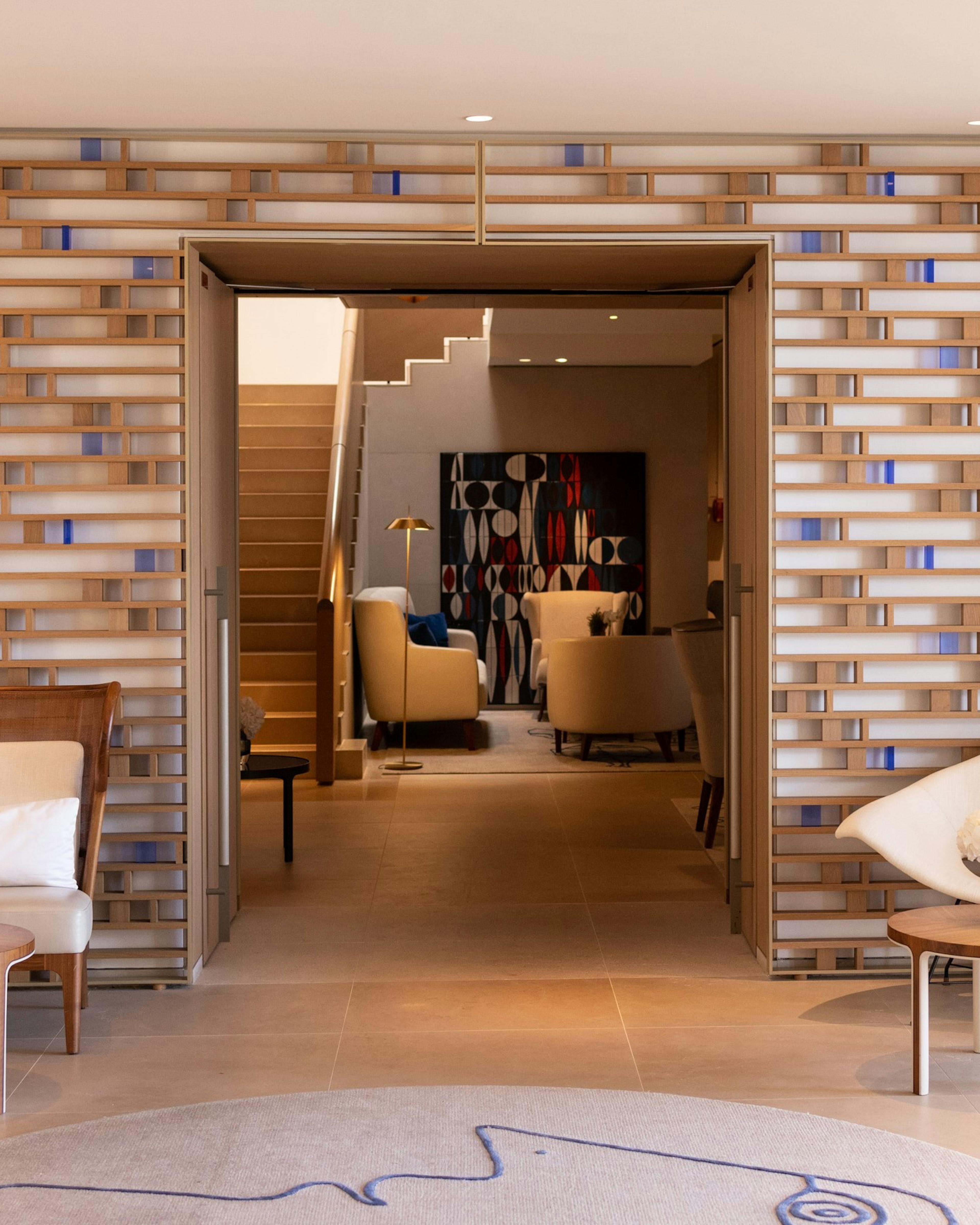 Conçue par le célèbre architecte Jean-Michel Wilmotte, la Maison dégage le même charme emblématique de confort et de plaisir balnéaire qui a fait la renommée de la propriété, aujourd'hui rehaussé par des éclats de modernité vibrante complétés par des matériaux doux et terreux. Le bleu Riviera Signature s'harmonise avec des tons ivoire délicats, faisant écho à l'environnement. Le décor est fortement influencé par la lumière de rêve de la Méditerranée, jouant avec des matériaux et des écrans translucides pour créer des ombres ludiques.